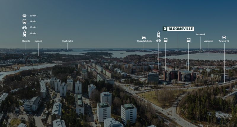 Yrityspuisto Bloomsville on 1970- ja 80-lukujen aikana rakennettu, energiataloudelliseksi päivitetty toimistokampus, joka sijaitsee tiiviisti rakennetulla kaupunkialueella, hyvien julkisten yhteyksien äärellä. Tilamuutokset suunnitellaan tyyliltään mahdollisimman aikaa kestäväksi ja toiminnallisuudeltaan helposti muovattaviksi. Bloomsvillen yleiset alueet, palvelut ja ominaisuudet on suunniteltu vastuullisuutta painottaen.