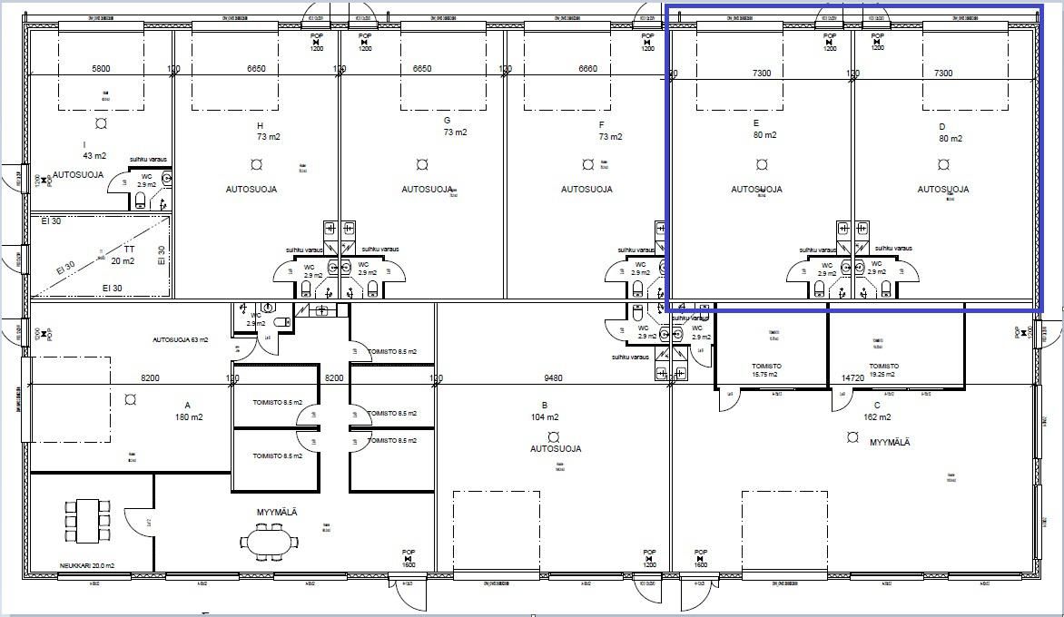 Nyt vapaana vuokrattavaksi 80 m2 kokoinen hallitila. Tila sijaitsee rakennuksen takakulmassa. Ympäri ajettavan rakennuksen piha on kokonaan asfaltoitu ja siinä on hyvin pysäköintitilaa.
