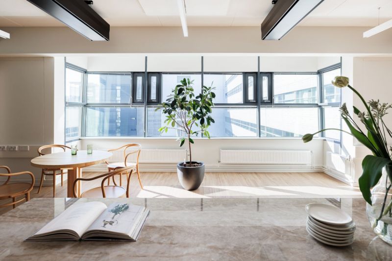 Tilassa yhdistyvät avara avotoimisto sekä monipuoliset neuvottelu- ja työtilat. Käytössä on yhteensä seitsemän erillistä neuvottelu- ja tiimitilaa, jotka mahdollistavat sujuvan yhteistyön, asiakastapaamiset ja rauhallisen työskentelyn. Lisäksi tilasta löytyy viihtyisä lounge- ja taukotila, joka toimii luontevana kohtaamispaikkana henkilöstölle.