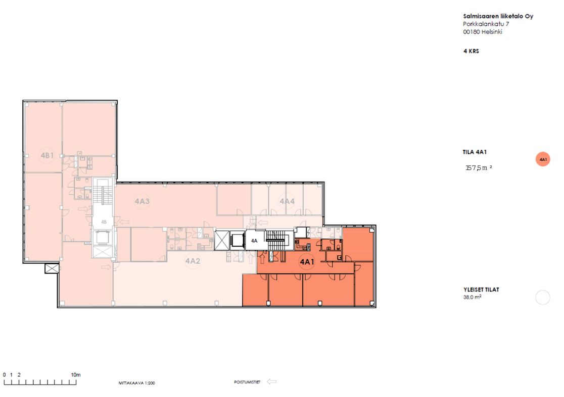 Neljännessä kerroksessa sijaitseva toimisto n. 157,5 m² tarjoaa tehokkaan ja inspiroivan työympäristön 5–15 henkilön tiimille. Tilassa on muunneltava pohjaratkaisu sisältäen wc:n, keittiön sekä viisi erikokoista työhuonetta, jotka mahdollistavat rauhallisen työskentelyn, tiimipalaverit ja joustavat käyttötarpeet. Valoisa ja toimiva kokonaisuus sopii yritykselle, joka arvostaa modernia työtilaa ja sujuvaa arkea.