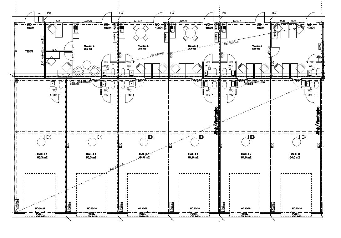 Hallitiloissa on voimavirta, viemärivaraukset, LED -valaistus, pinnoitettu lattia, lattiakaivo, vesipiste ja sähköinen nosto-ovi. Toimistotiloihin voidaan toteuttaa varustelut tarpeen mukaan.