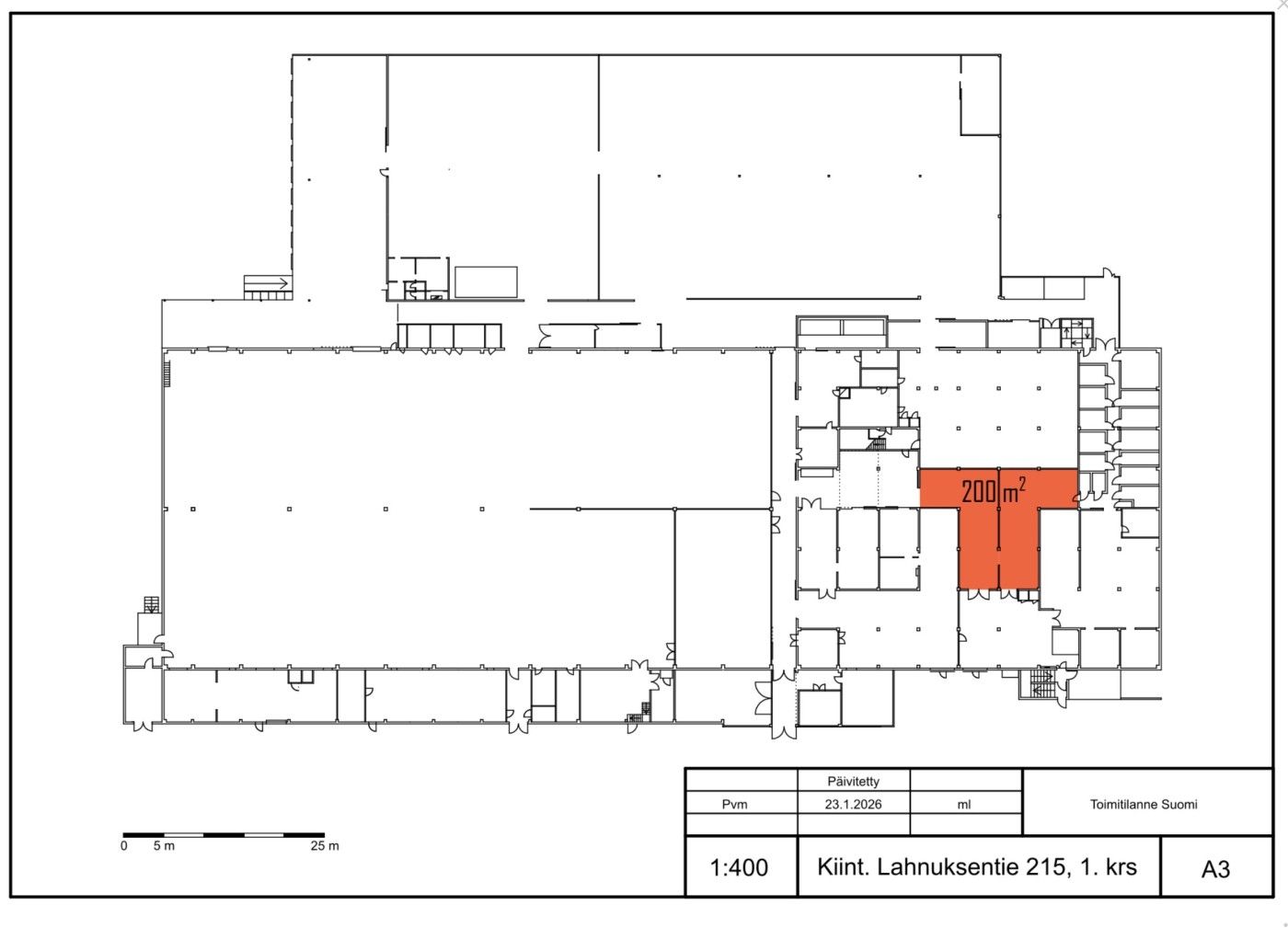 Vuokrataan siisti ja lämmin noin 200 m2:n tuotanto- tai varastotila rakennuksen ensimmäisessä kerroksessa. Tila soveltuu hyvin kevyempään tuotantoon, kokoonpanoon tai varastointiin. Tilassa on väliseinä, jossa kulkuaukko tilojen välillä. Tilassa ei ole lattiakaivoa, joten se ei sovellu autopesula- tai korjaamotoimintaan.