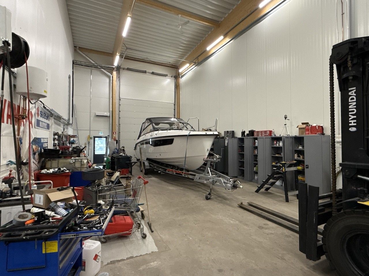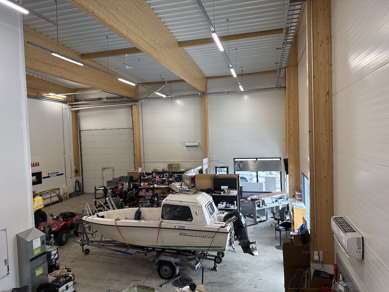 Läpiajettava huoltohalli tekee logistiikasta ja suurten koneiden tai veneiden käsittelystä vaivatonta.