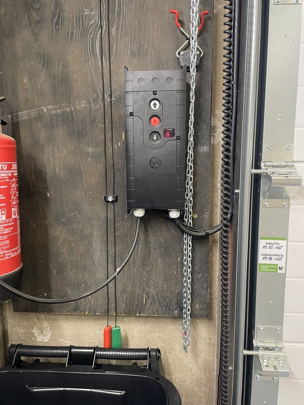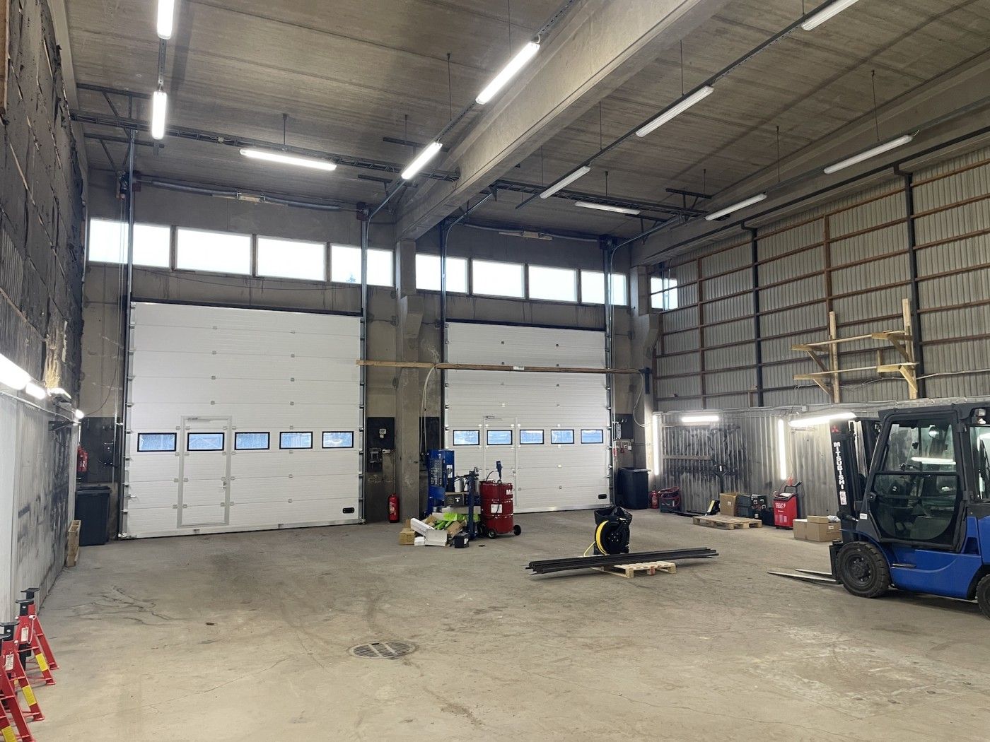 Tilassa 2 kpl sähköiset nosto-ovet, nosto-ovien koko 4,50 m x 4,50 m.