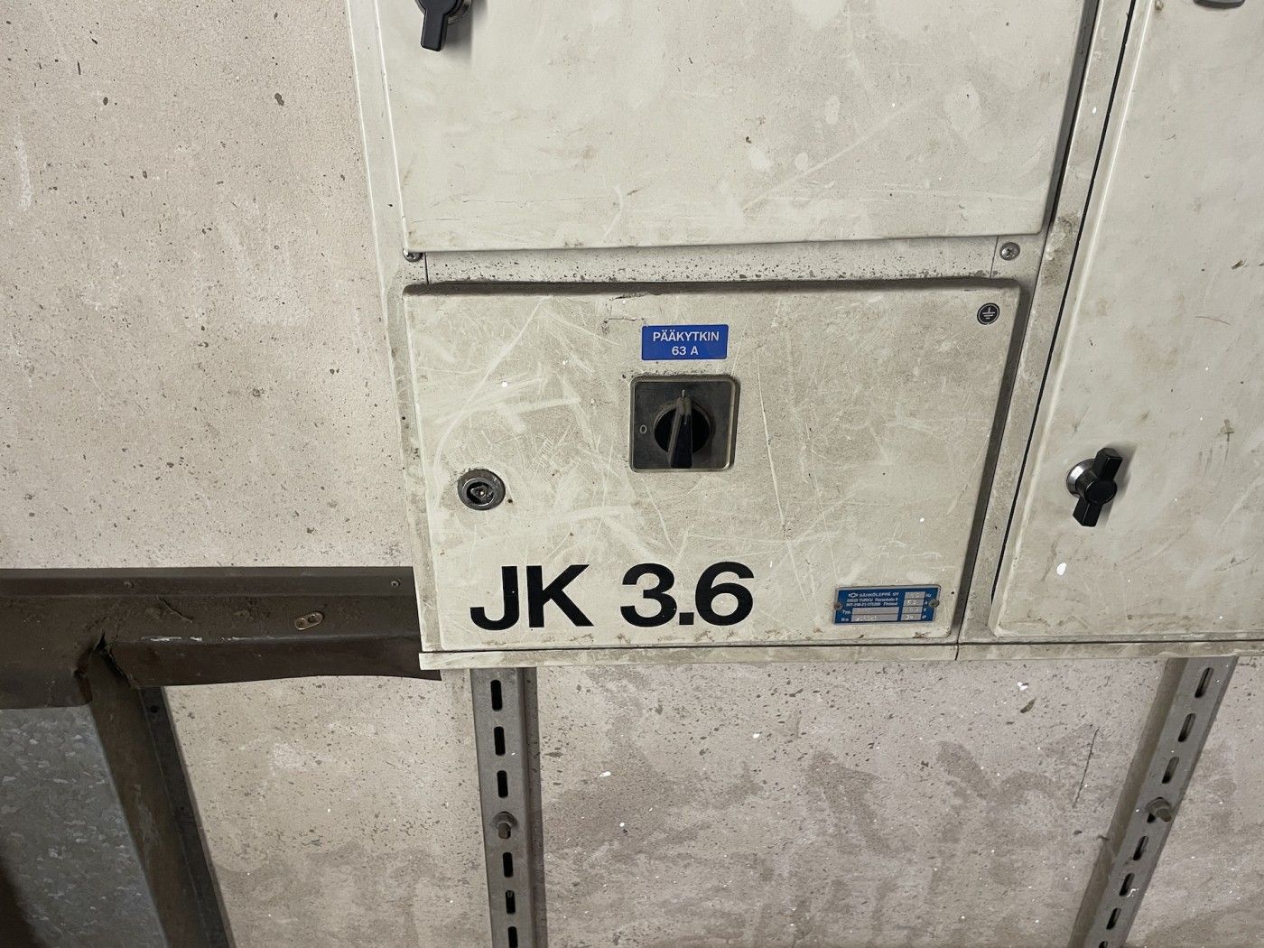 Tilassa on wc ja pieni toimisto. Sulakekoko 63A.