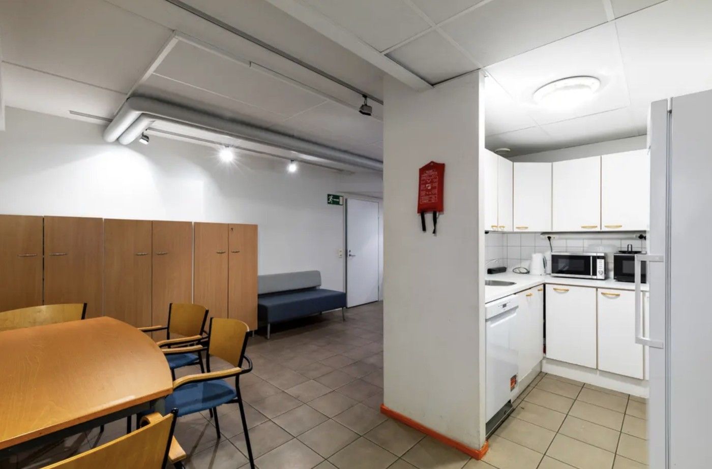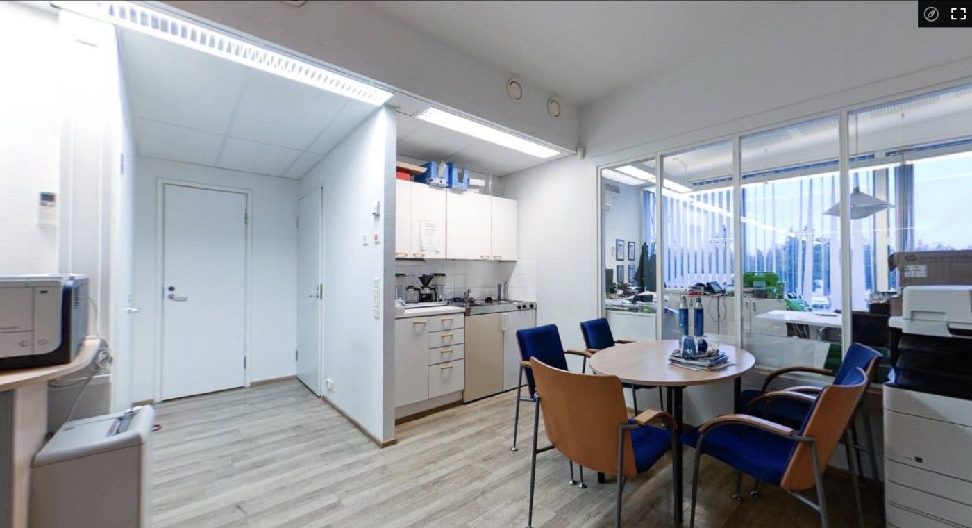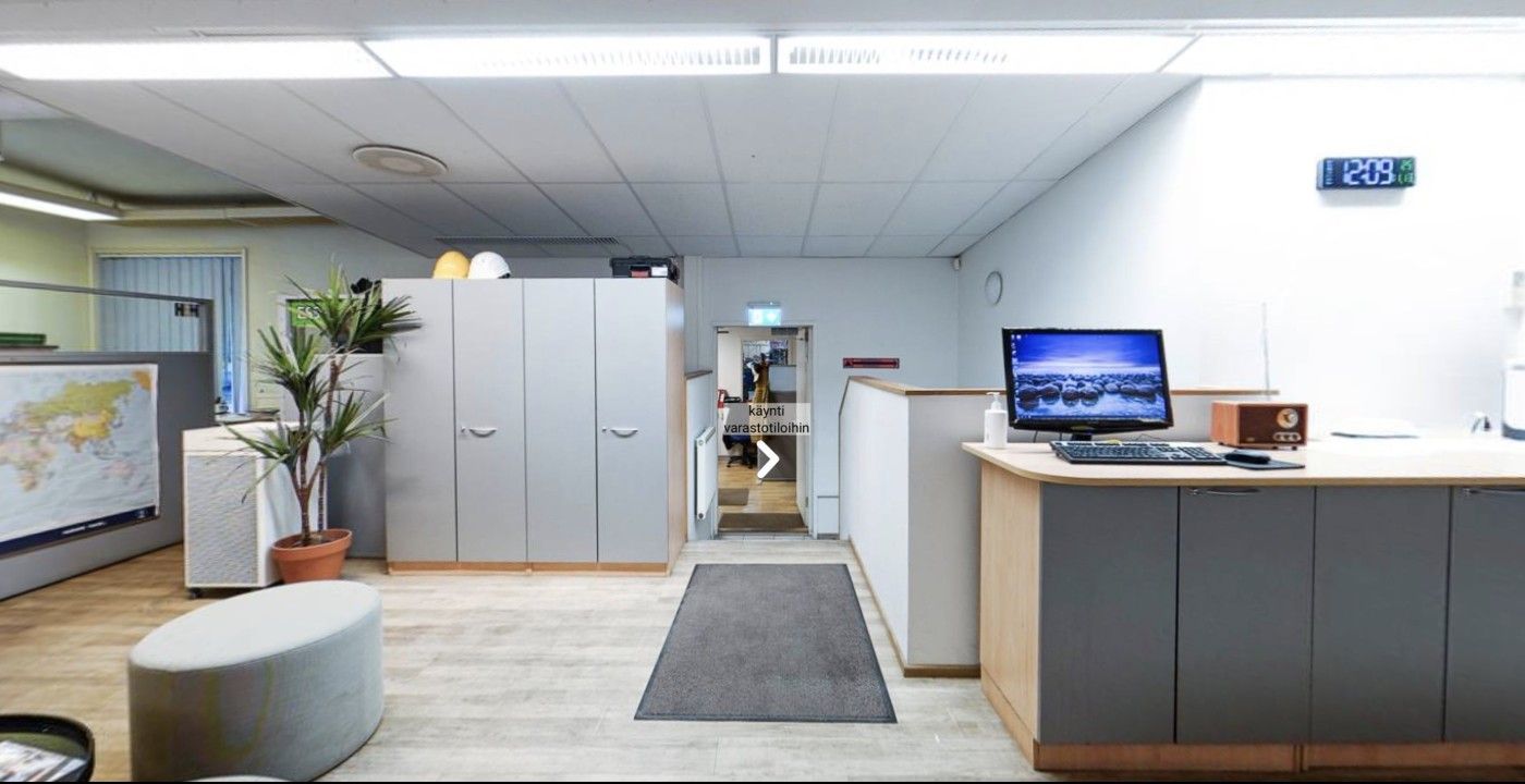Rakennuksen itäpäädyssä sijaitseva toimisto-osuus muodostaa toimivan kokonaisuuden varastotilojen rinnalle, ja siihen sisältyvät myös kellarikerroksen sosiaalitilat. Vuokralaisen käytössä on lisäksi asfaltoitu, aidattu piha-alue, jossa on lukittava portti, mikä tuo lisäturvaa ja käytännöllisyyttä arjen toimintoihin.