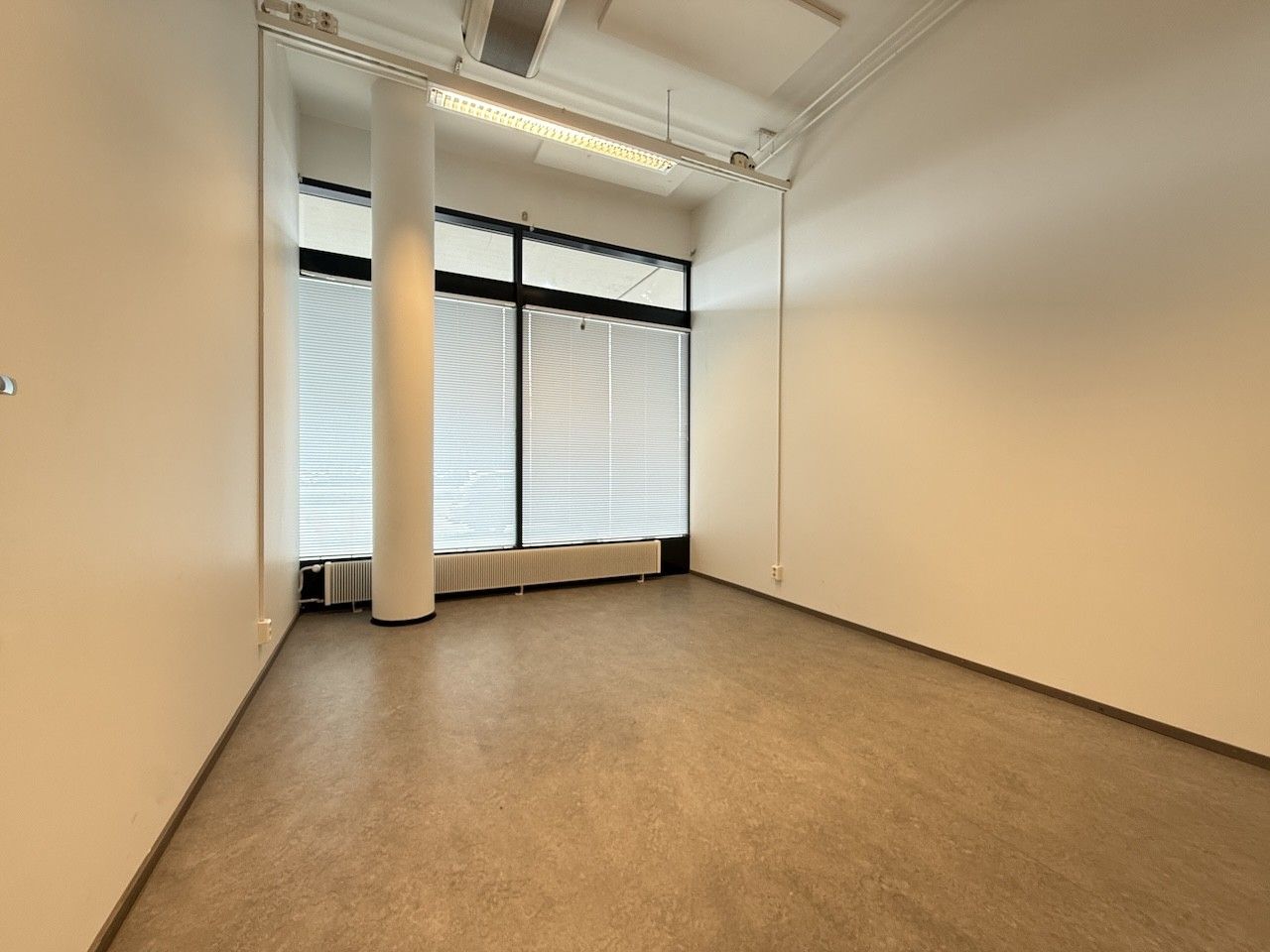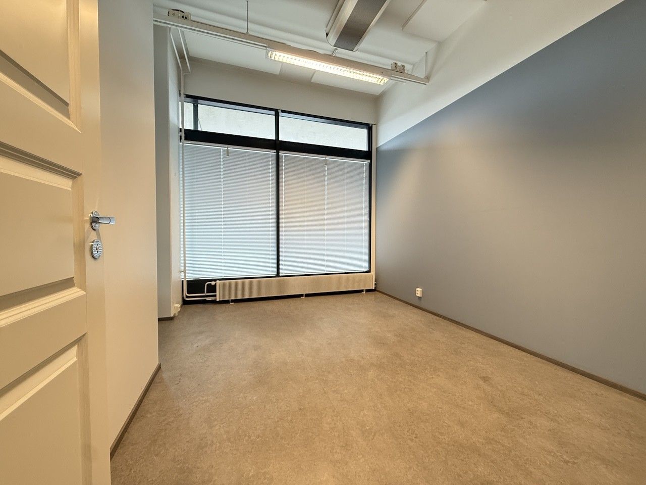 Tilan pohjaratkaisu on erittäin toimiva: se koostuu avarasta avotilasta sekä kahdesta erillisestä työhuoneesta, jotka mahdollistavat rauhallisen työskentelyn tai asiakastapaamiset. Arjen sujuvuutta lisäävät tilava wc-tila, suihku sekä huoneistoon kuuluva kuuden neliömetrin varasto, joka tarjoaa näppärää säilytystilaa tarvikkeille tai arkistolle.