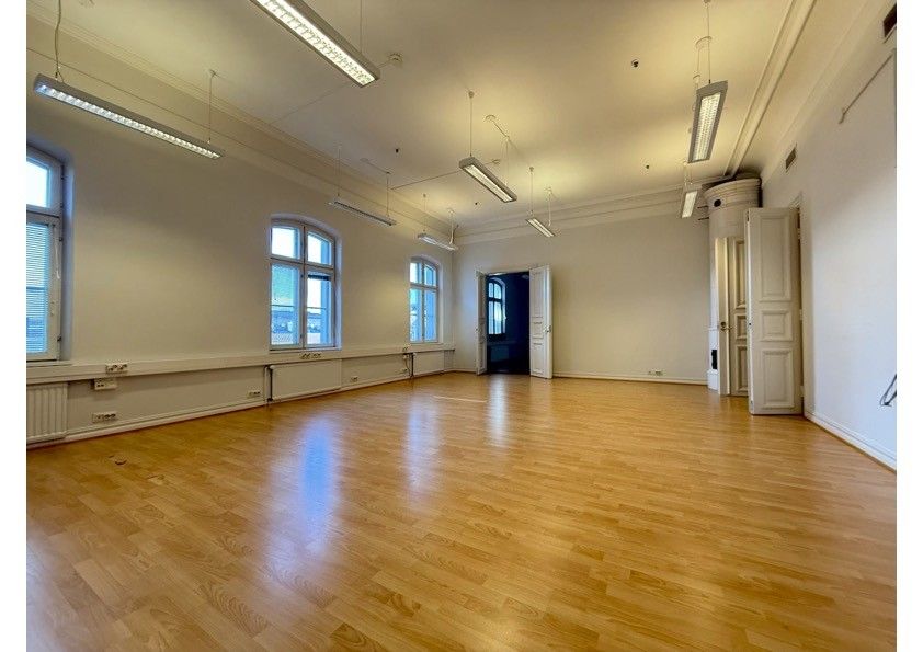 Tilakokonaisuus käsittää 5–6 erikokoisia huoneita sekä keittiön. Huoneiden suuri huonekorkeus tuo tilaan avaruutta ja arvokasta tunnelmaa.