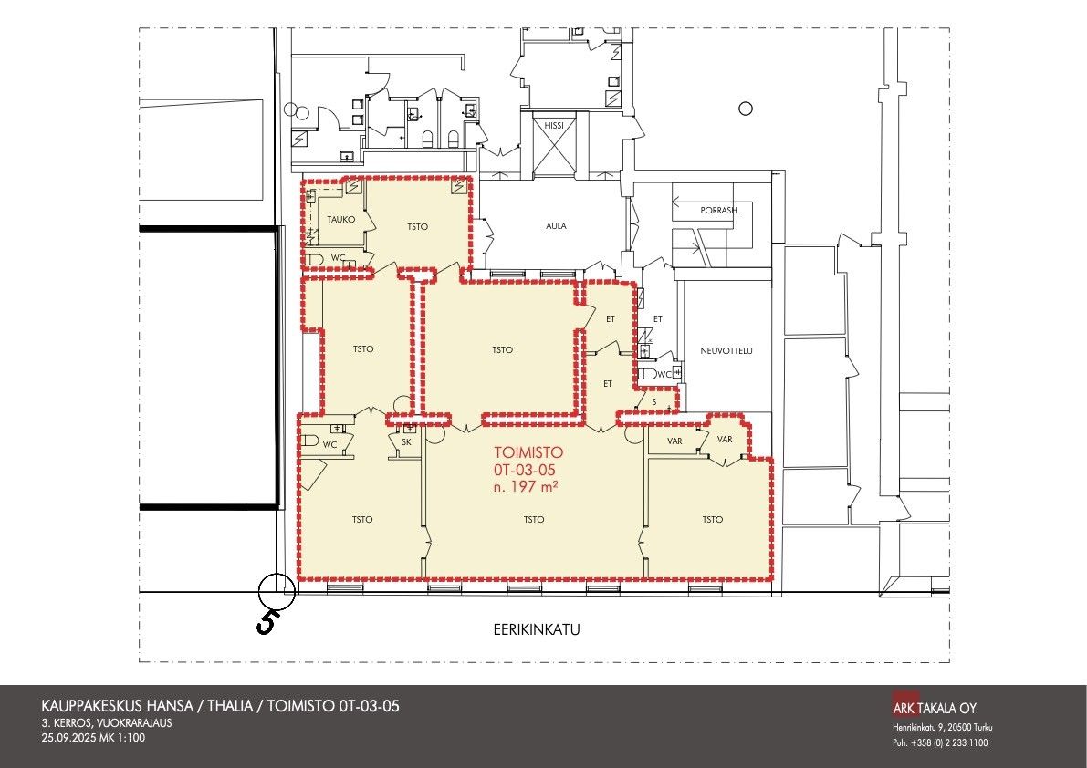 Vuokrattavana 3. kerroksen 197 m2 toimistotila arvokkaassa vanhassa ydinkeskustan talossa, osoitteessa Eerikinkatu 13, Turku.