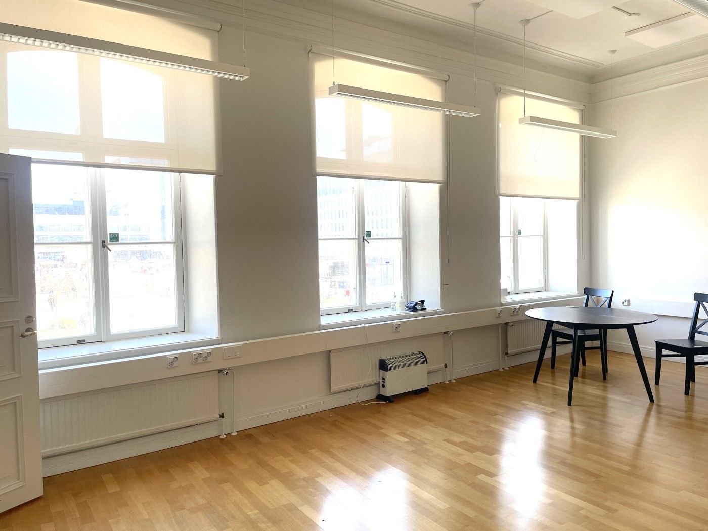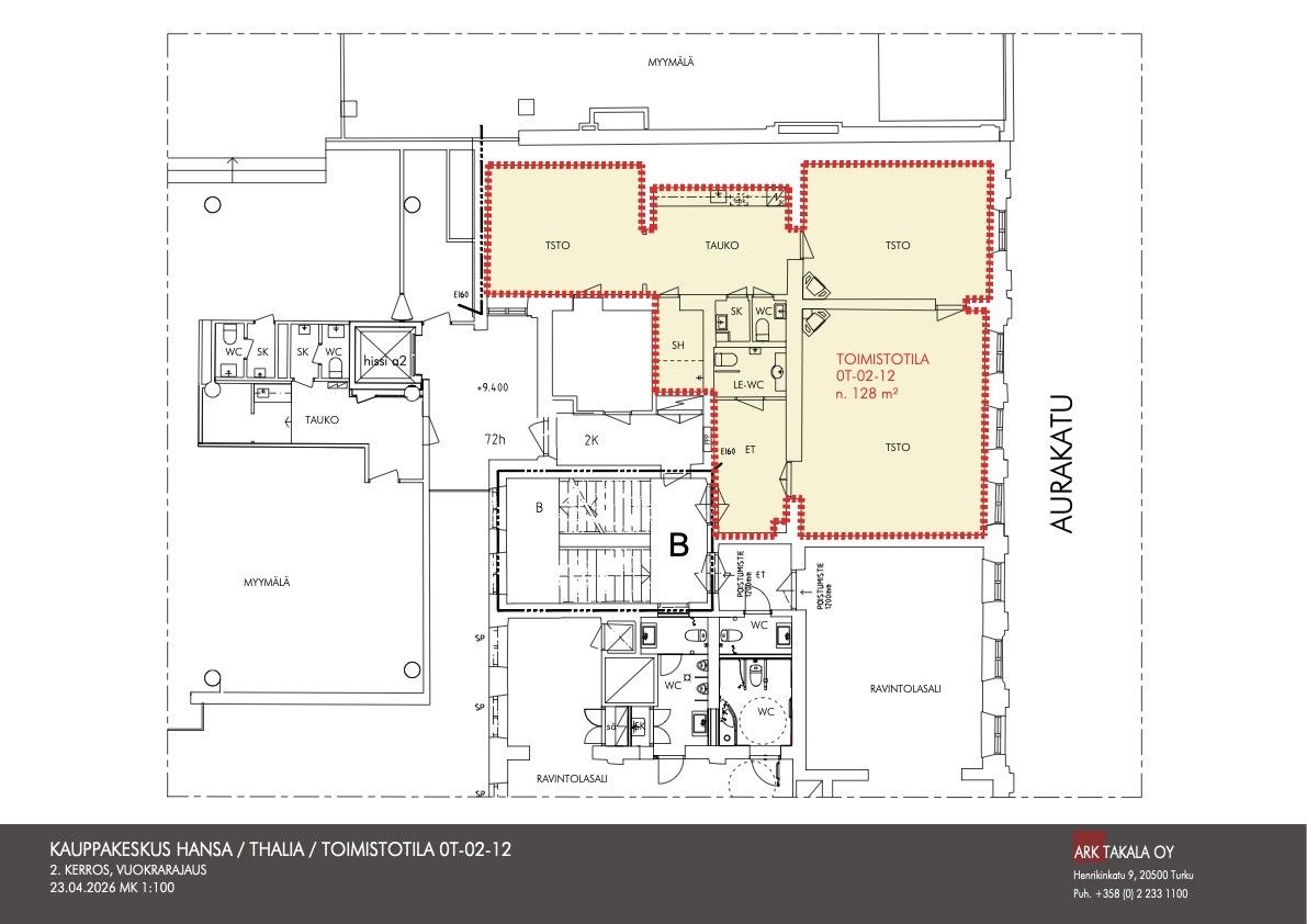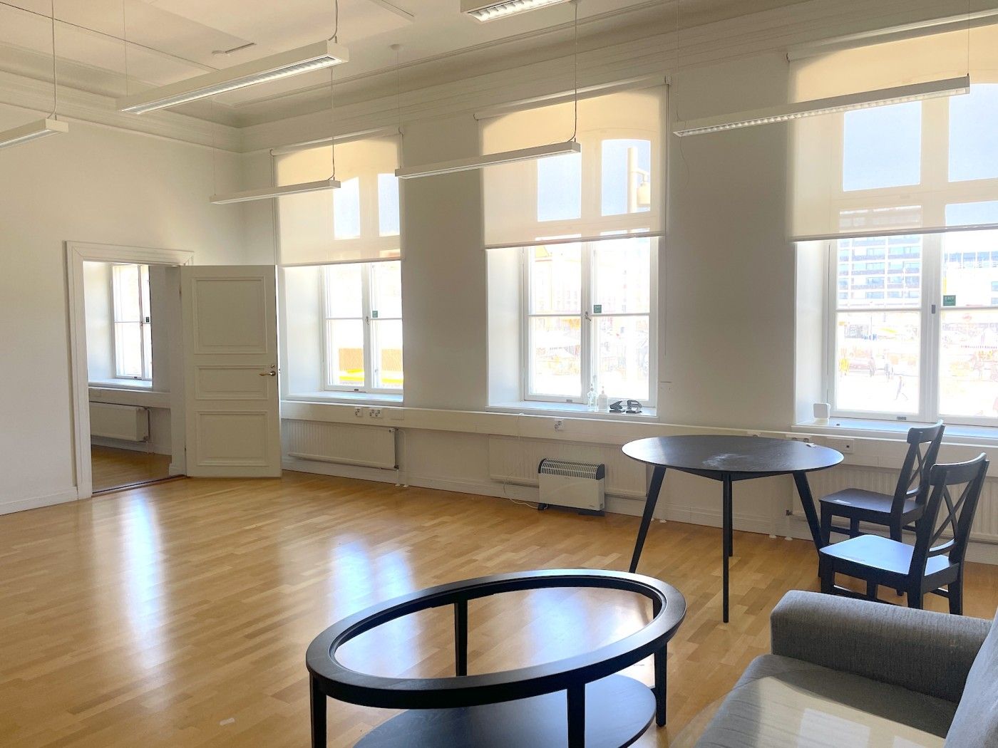 Vuokrattavana 2. kerroksen upea 128 m2 toimistotila Kauppakeskus Hansan Apteekkitalossa. Huoneisto käsittää 2-3 huonetta + keittiön ja kaksi wc-tilaa, joista toinen on LE-mitoitettu. Lisäksi tiloista löytyy suihku. Ikkunoista avautuvat näkymät kahdesta huoneesta Kauppatorin suuntaan sekä keittiö-taustatiloista Thalian sisäpihalle. Vanhan arvotalon ainutlaatuinen tunnelma ja korkeat huoneet luovat tilalle arvokkaan ilmeen.