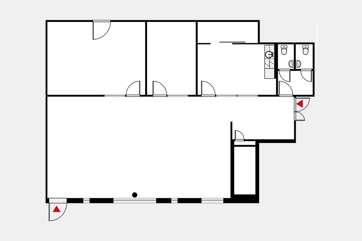 Tilassa on avara avotyötila, suuri neuvotteluhuone, yksi pienempi huone sekä oma keittiö ja wc-tilat. Tilaan on mahdollista järjestää oma sisäänkäynti katutasosta. Tila koostuu kahdesta vierekkäisestä toimistotilasta, ja on jaettavissa 255 m2 ja 152 m2, ohessa pohjakuvat tiloista.