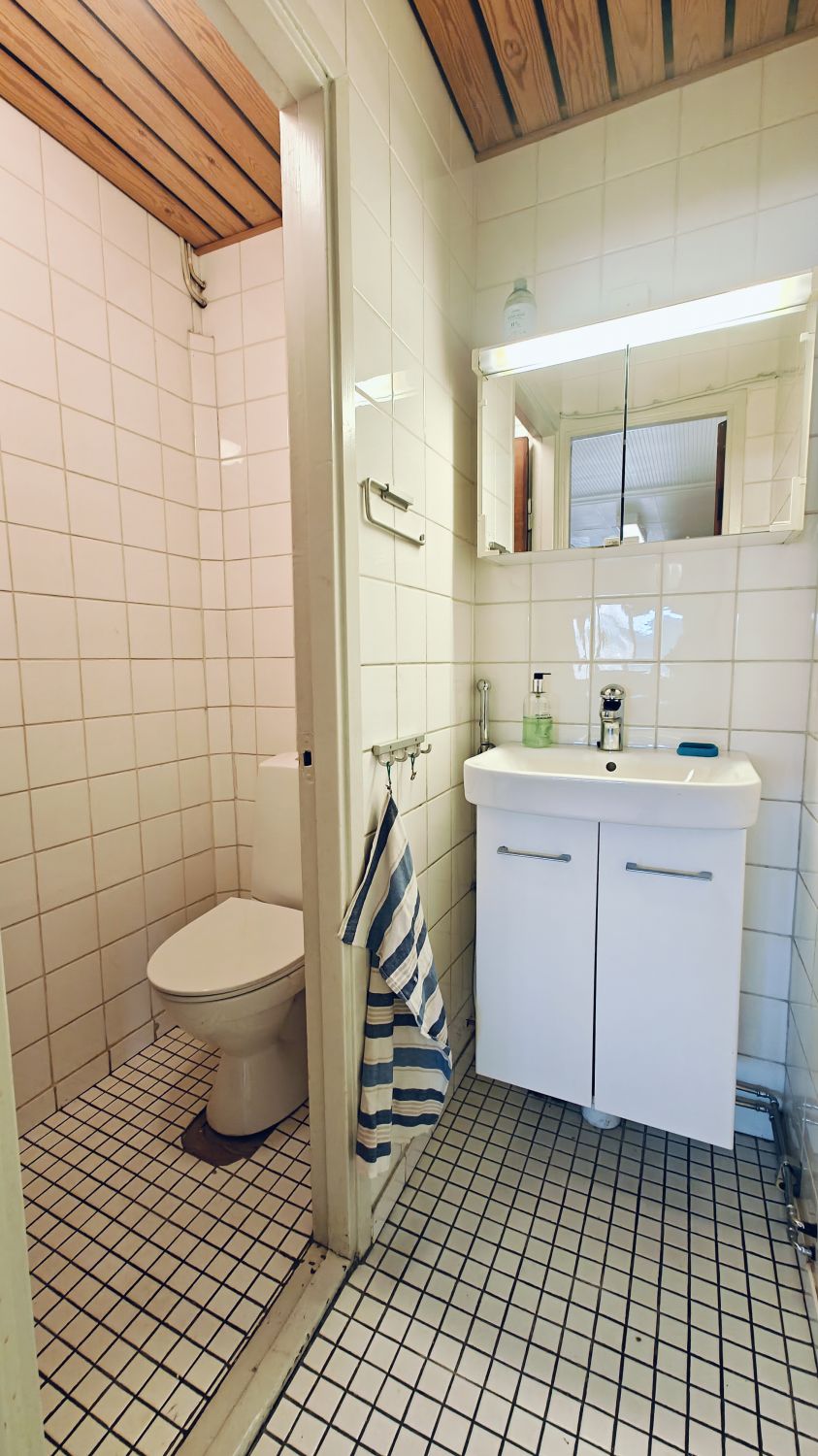 Yhteiskäytössä keittiö, taukotila ja wc