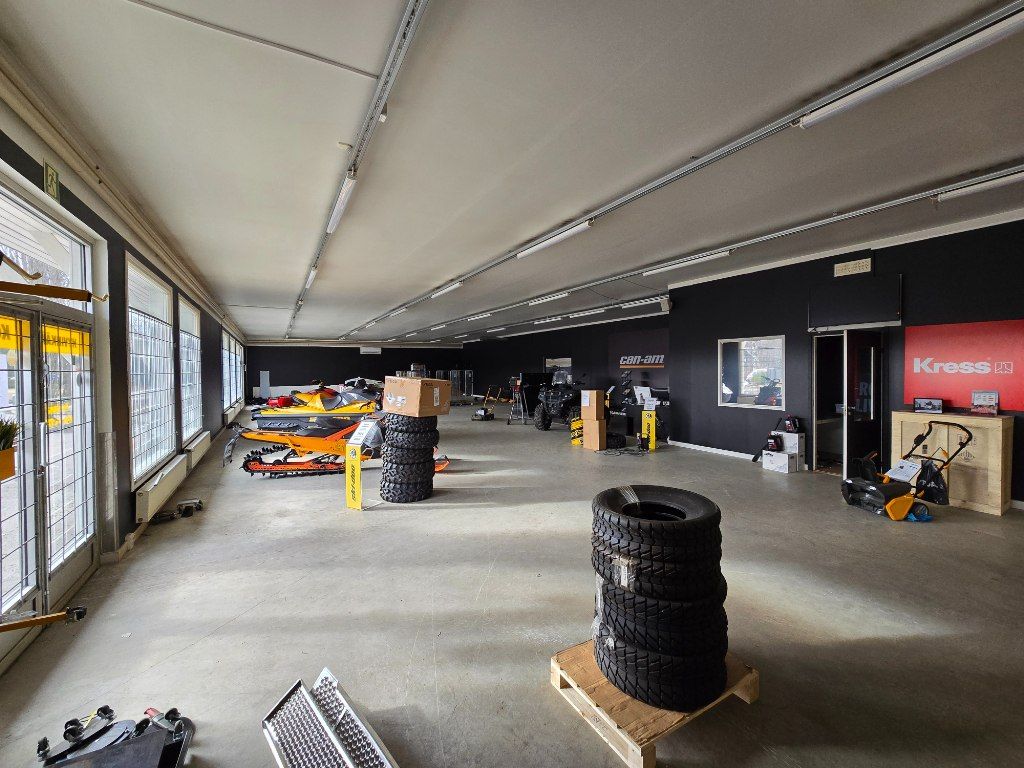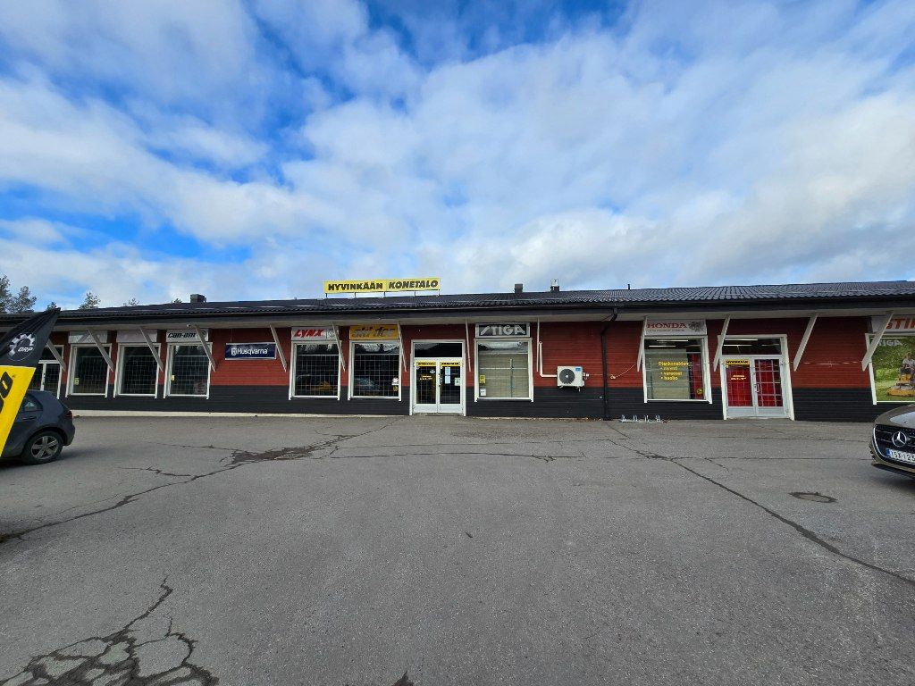 Vuokrattavana toimitilakokonaisuus Hyvinkäällä. Kokonaisuus koostuu 1148 m² myymälätilasta sekä 213 m² erillisestä huoltotilasta, jossa on autonosturit. Tila soveltuu esimerkiksi myymälä- ja huoltotoimintaan.