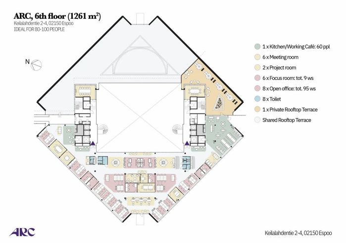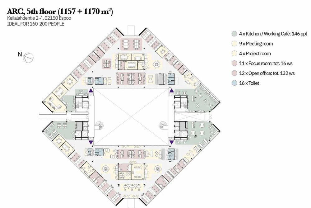Keilaniemen ARC on uudistuva toimistokampus Espoon Keilaniemessä, meren rannalla. Entinen Nokia-talo kehittyy vaiheittain moderniksi työympäristöksi, jossa yhdistyvät toimivat tilaratkaisut, hyvät palvelut ja keskeinen sijainti. Tarjolla on valoisia ja muuntojoustavia toimitiloja eri kokoisille yrityksille. Tilat tukevat hybridityötä ja arjen sujuvuutta: avoimet työalueet, kokoustilat ja yhteiset lounge-tilat mahdollistavat sekä keskittymisen että yhteistyön. Kiinteistön vahvuuksia ovat merelliset näkymät, kattoterassit ja rantapuutarha, jotka tuovat työpäivään viihtyisyyttä. Vuokralaisille on tarjolla myös arkea helpottavia palveluita sekä hyvinvointitiloja.
