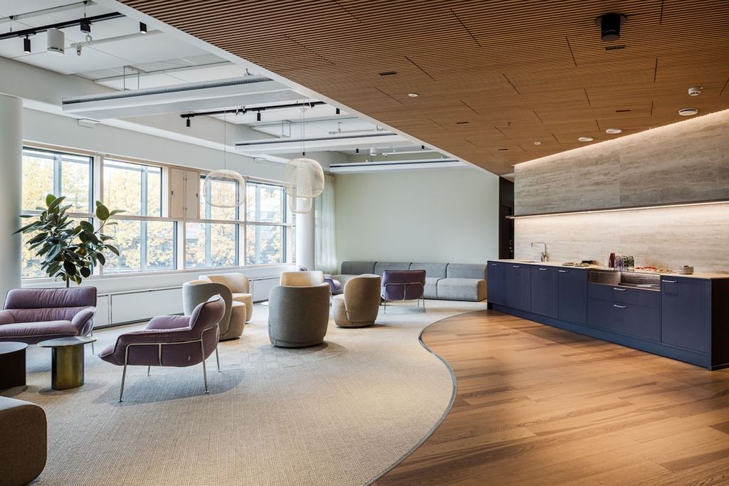 Pääkonttoritason toimistotilaa merellisessä Keilaniemessä.