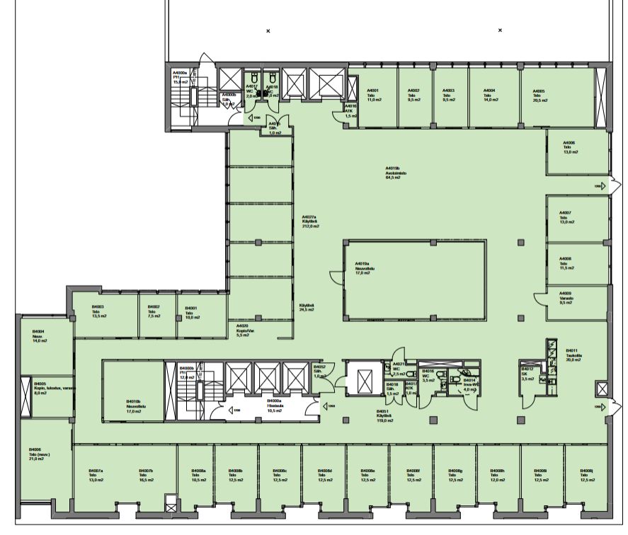 Vuokrattavana 4.kerroksen toimisto (902 m2). Tila muokataan vuokralaisen tarpeien mukaan. Talo on peruskorjattu vuonna 2011 sen alkuperäistä tunnelmaa kunnioittaen. Kiinteistössä palvelee edustava tilaussauna, ja sisäpihalla on viihtyisä talvipuutarha. Ikkunanäkymät tiloista avautuvat Paasivuorenpuistikkoon. Kohteessa aulapalvelu, lounasravintola, saunatilat ja parkkihalli.Hyvät julkiset kulkuyhteydet.
