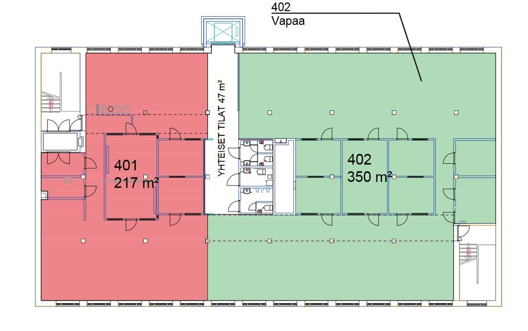 Vapaana 350 m2 kokoinen toimistotila 4. kerroksessa. Ohessa yleiskuvia kiinteistön muista tiloista.