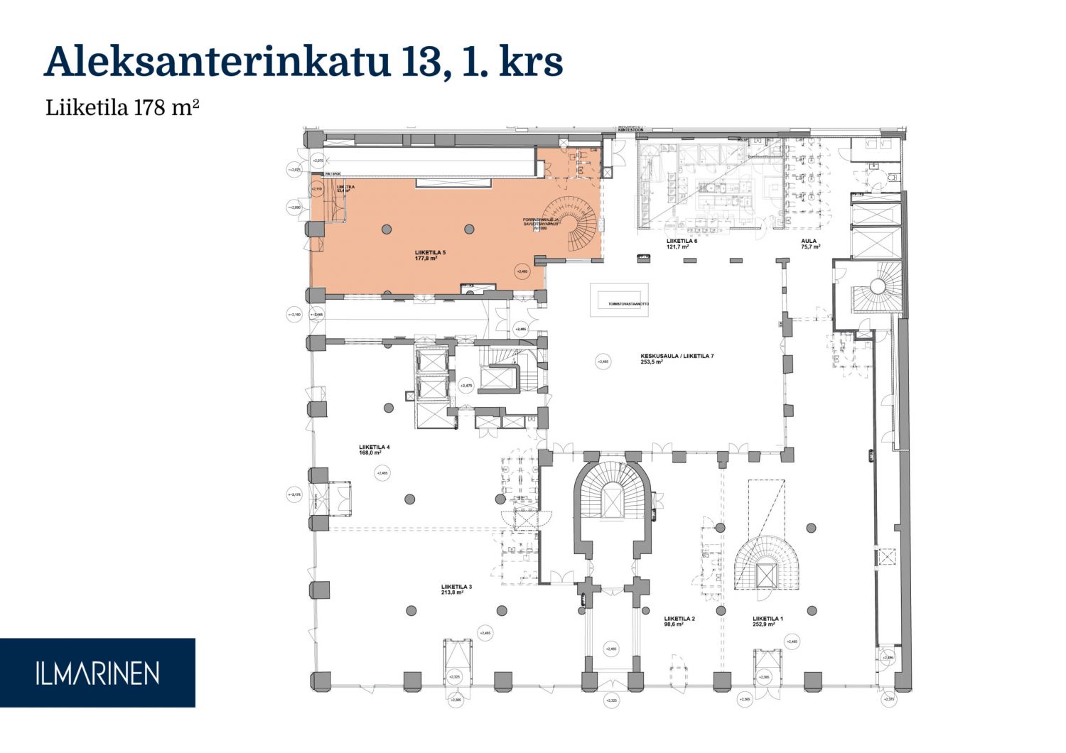 Erinomaisella sijainnilla Helsingin ydinkeskustassa, Aleksanterinkatu 13:ssa, on nyt tarjolla 178 m² liiketila Mikonkadun puolella. Tilassa on suora katuyhteys, mikä takaa erinomaisen näkyvyyden ja saavutettavuuden asiakkaille. Historiallinen arvokiinteistö yhdistää näyttävät puitteet ja toimivan liiketilan parhaalla paikalla. Ota yhteyttä ja tutustu mahdollisuuksiin!