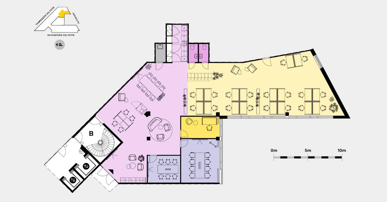 Keskeisellä sijainnilla oleva 1. kerroksen toimistotila 290,5m2 kesällä 2024 uudistetussa Dynamo Business Parkissa.
