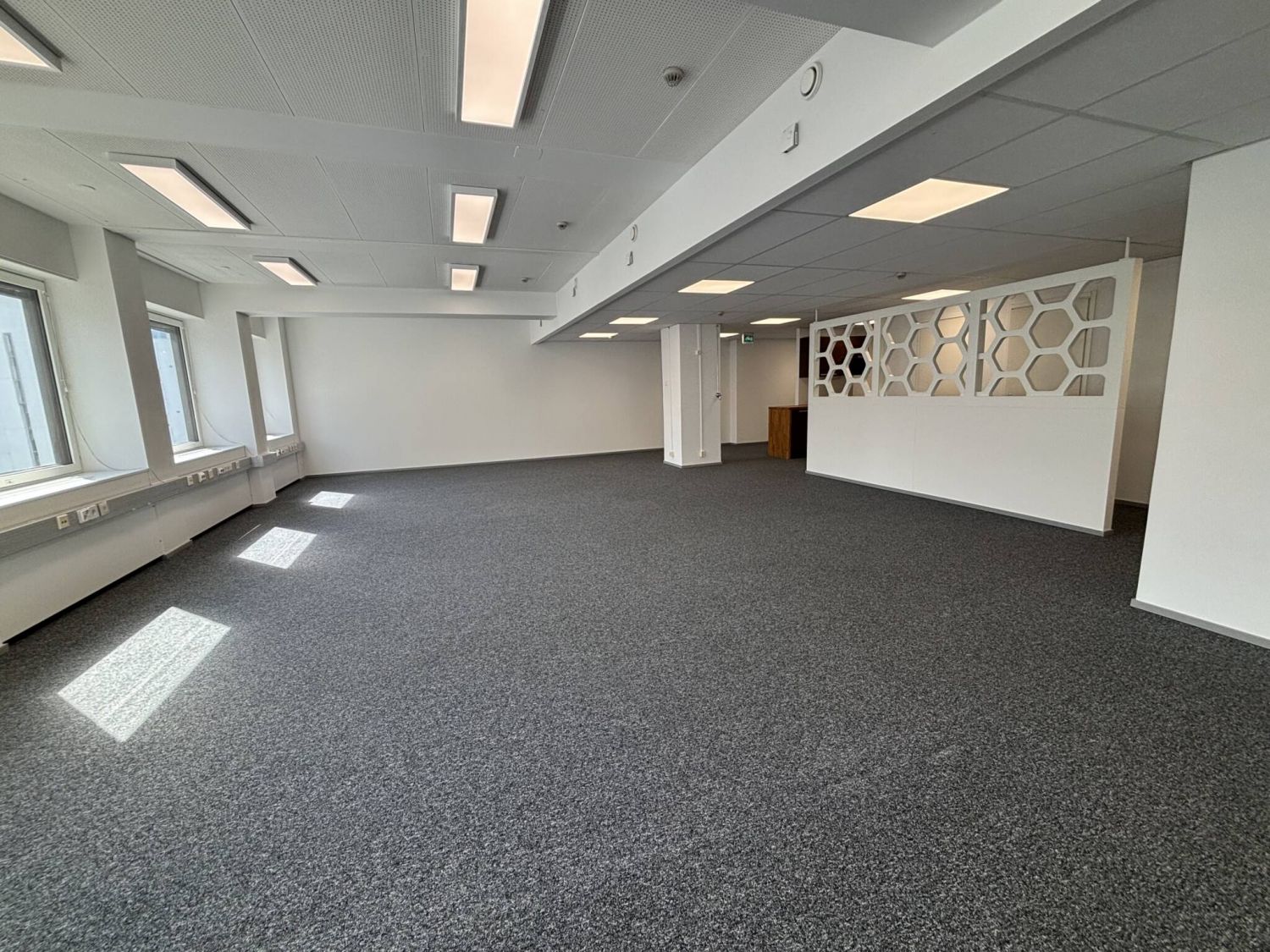 Muuttovalmis toimisto jossa on avotilaa ja huoneita.