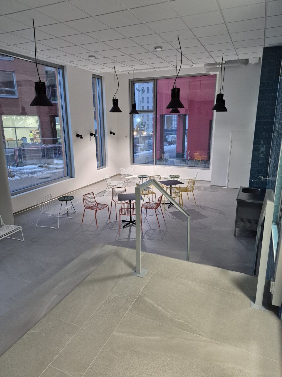 Jätkäsaaressa Gibraltarinaukiolla katutason 98,5m2 kahvilatila. Tilasta löytyy keittiö, sosiaalitilat, pieni varasto, kaksi asiakas vessaa ja yksi henkilökunnan wc.
