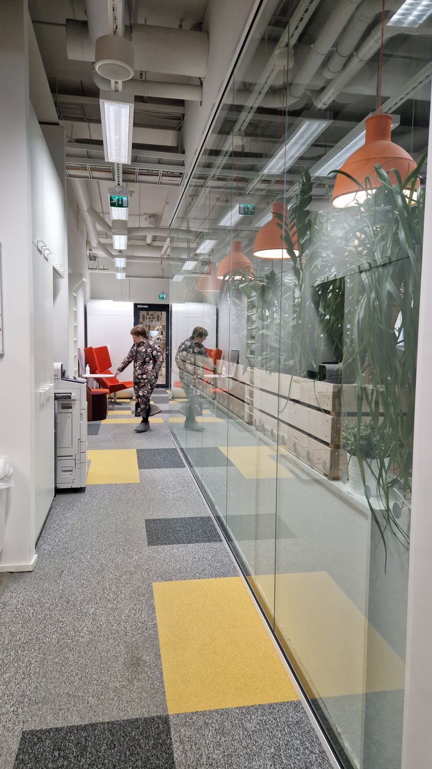 Huoneistossa on jäähdytys sekä koneellinen ilmanvaihto. Isot lasi-ikkunat kauppakeskuskäytävälle.