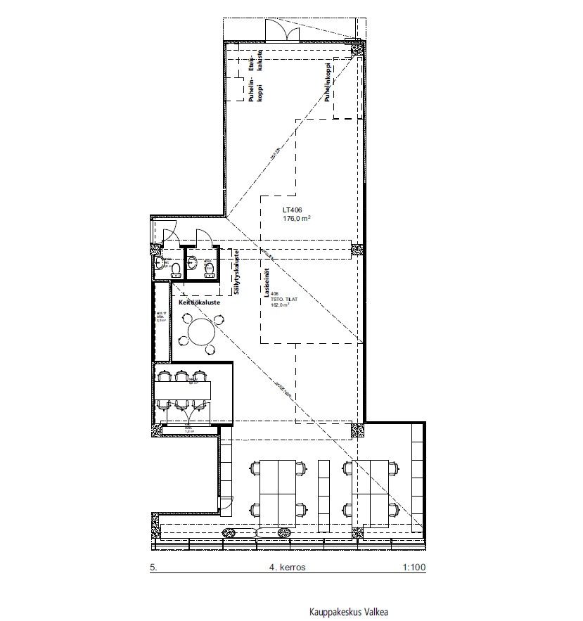 Valkean 4. kerroksessa on vuokrattavana 176 m2 toimistohuoneisto.