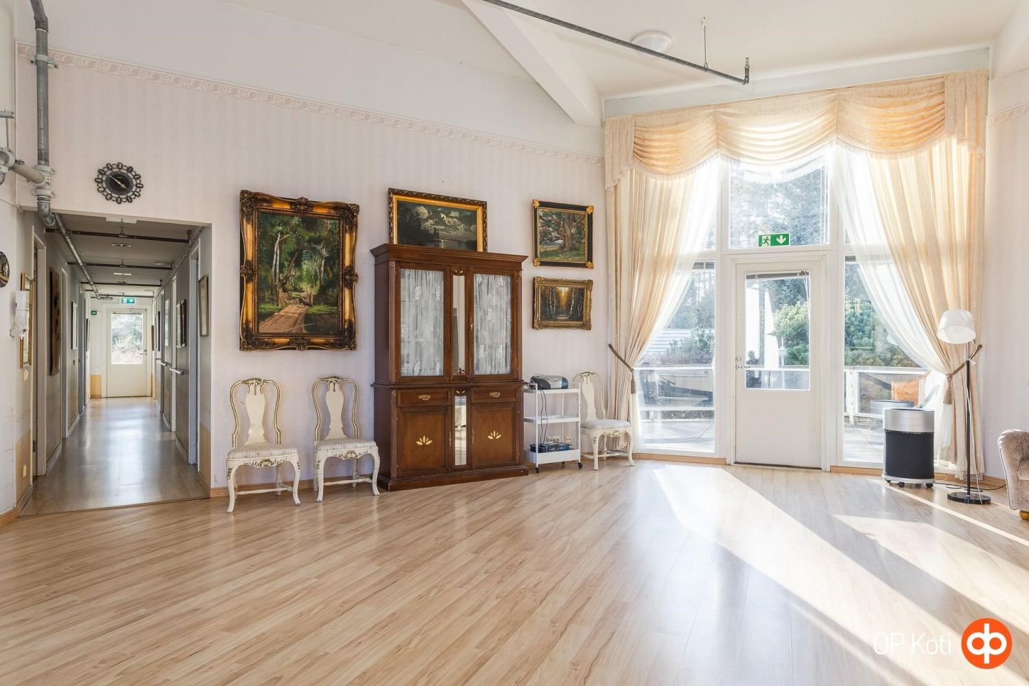 Rakennuksessa on yhteensä noin 545 m² sisätilaa. Tilat ovat avarat ja toimivat, ja kokonaisuuteen kuuluu peräti 20 huonetta, jotka soveltuvat esimerkiksi hoiva-, majoitus-, toimisto- tai muuhun palvelutoimintaan. Rakennuksen näyttävänä keskipisteenä toimii upea olohuone, jossa korkea huonetila luo vaikuttavan ja avaran tunnelman.