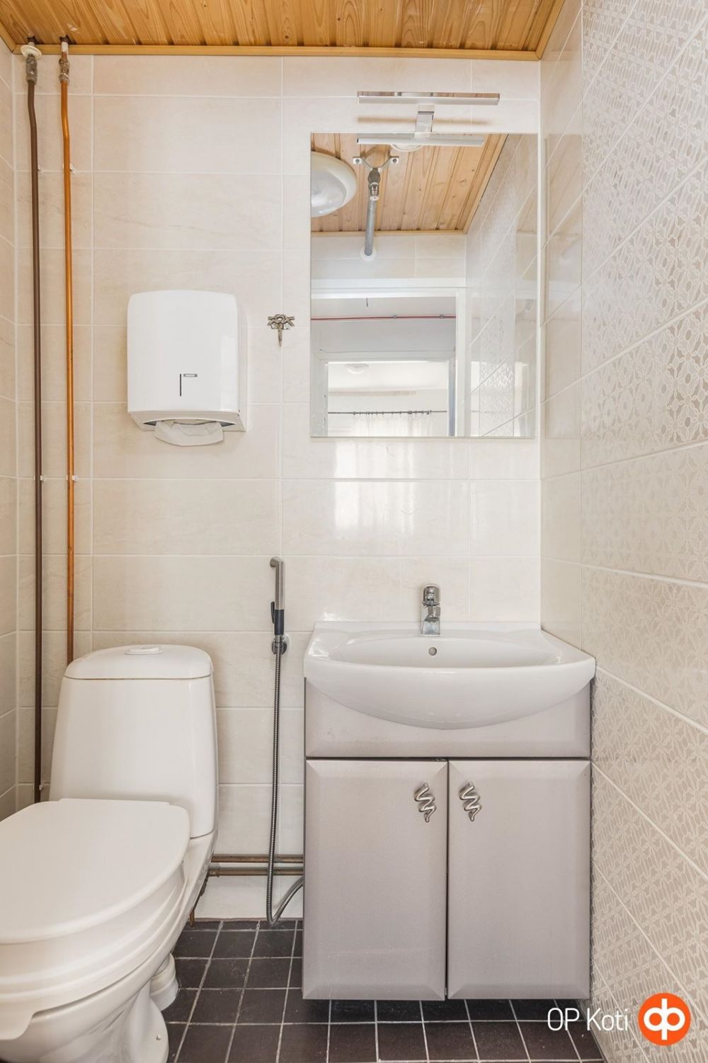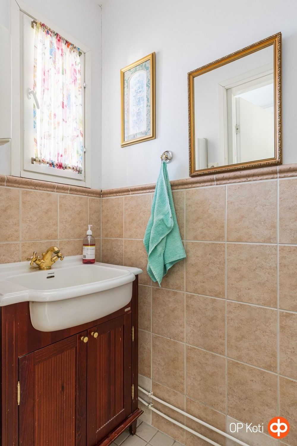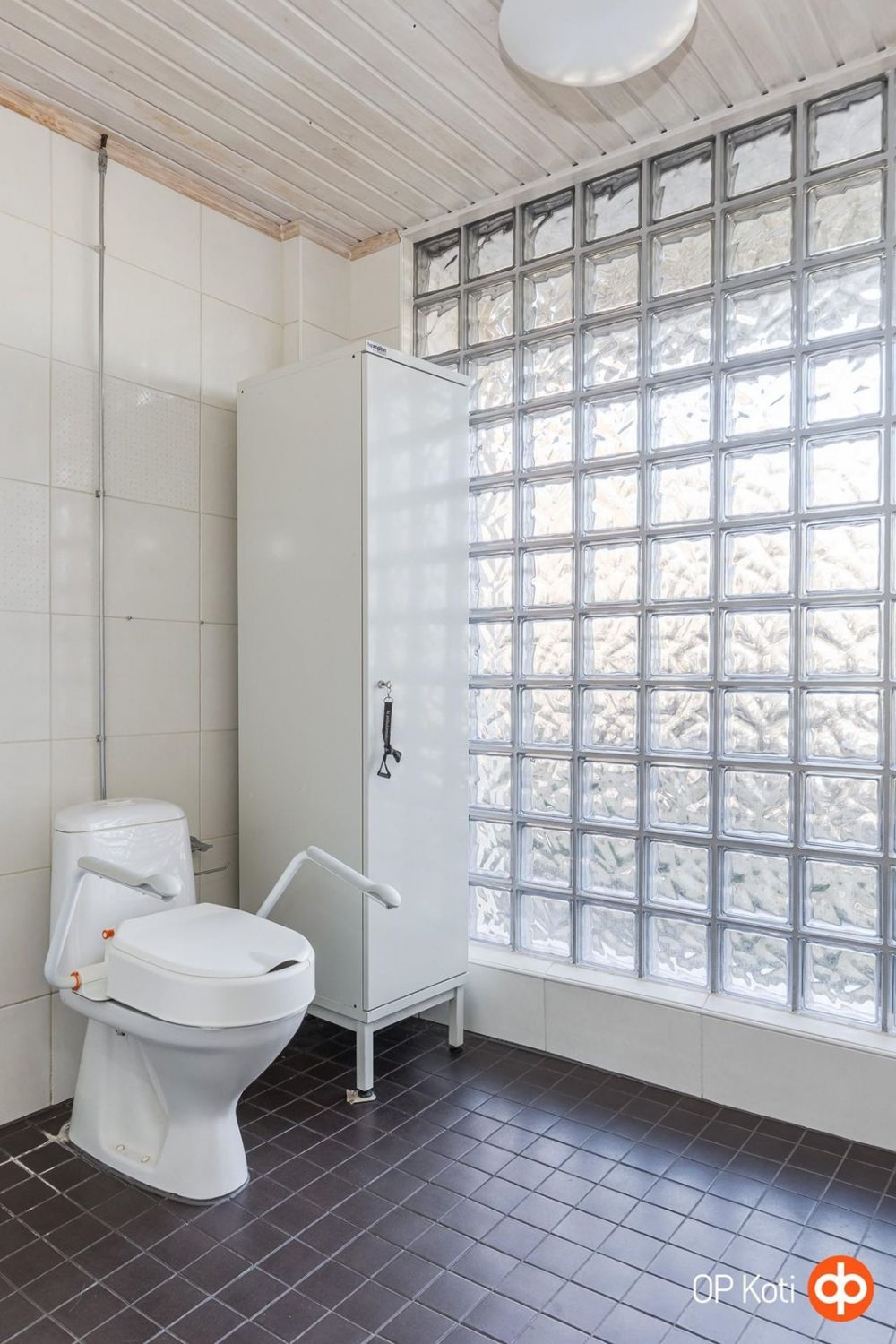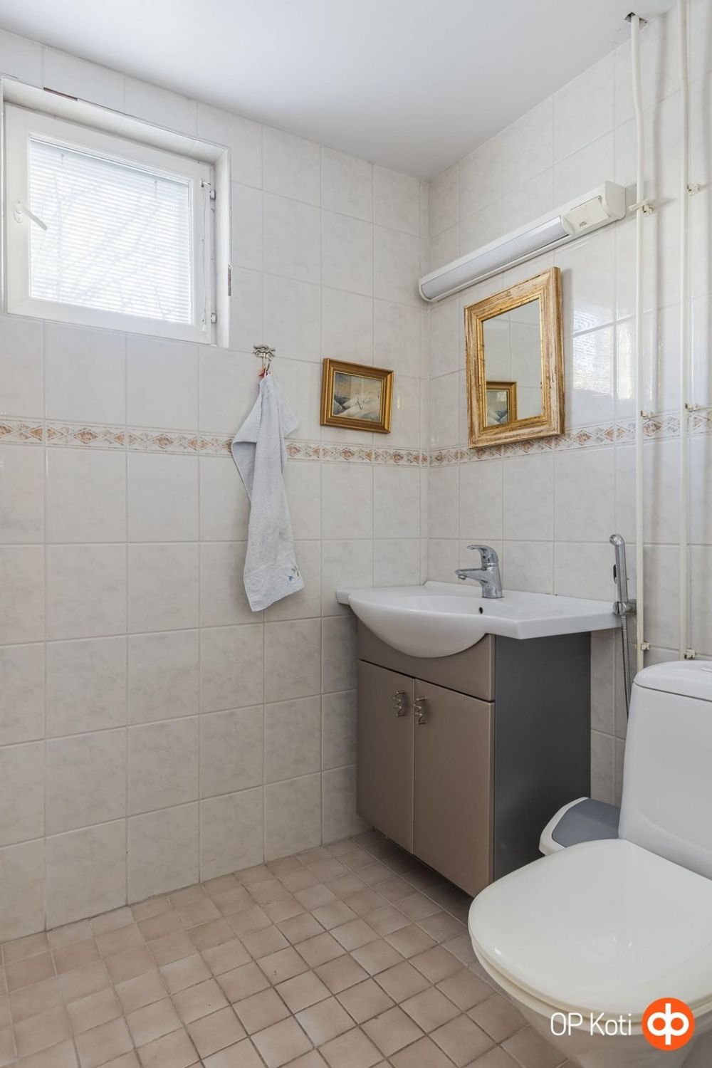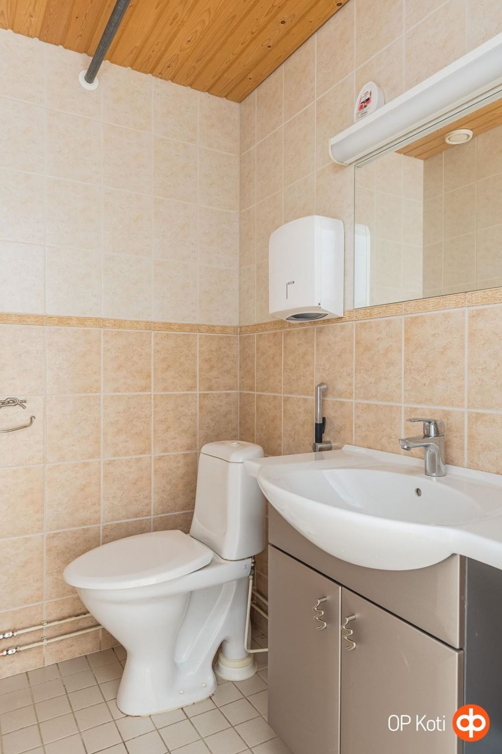 Siivouskomeroita 2kpl. Alakerta: eteishalli/porraskäytävä, pyykkihuone ja varastohuone, varastotila, tekninen tila, kylpyhuone ja lepo/toimistohuone jossa myös keittiö jääkaappeineen.