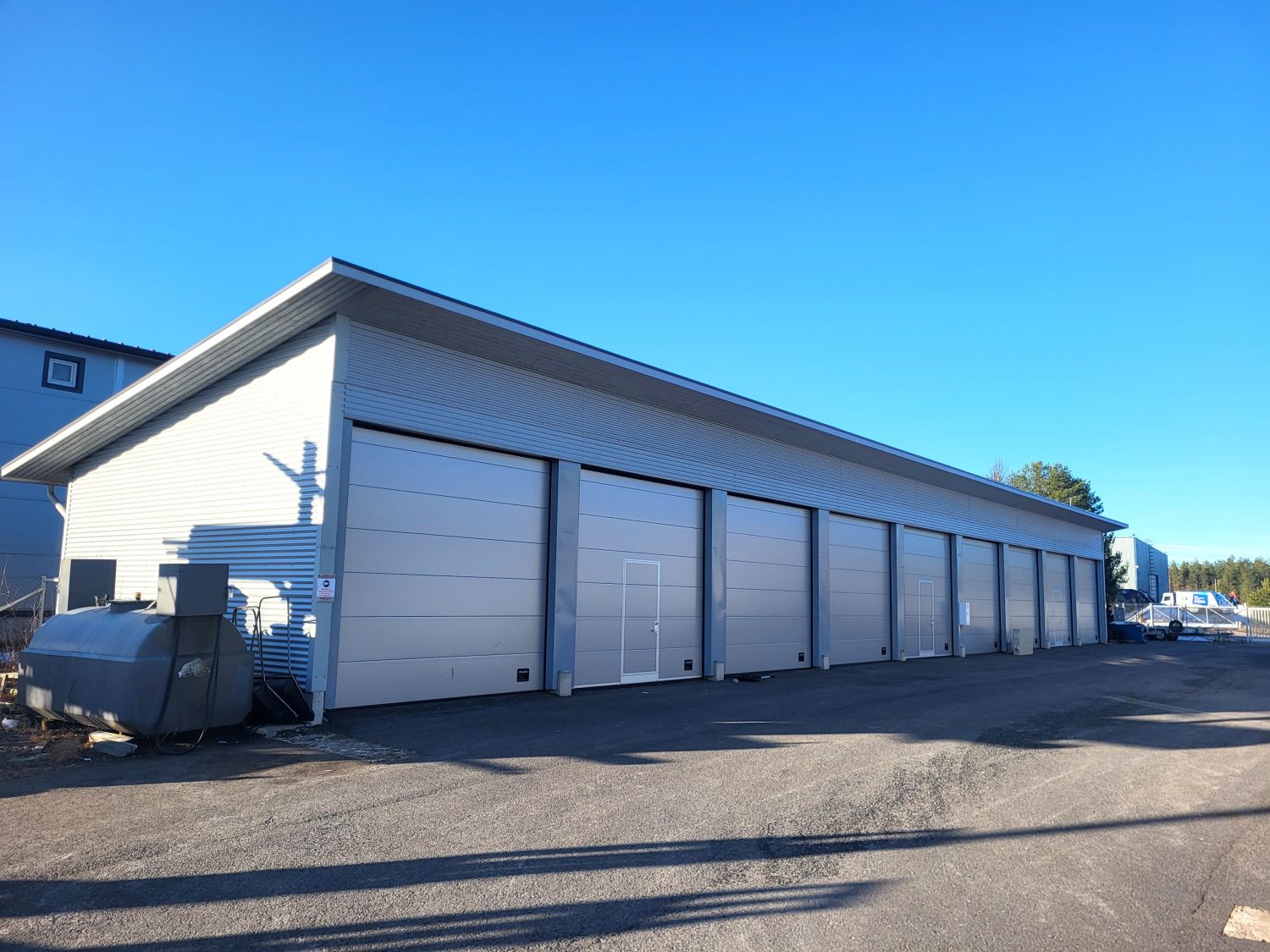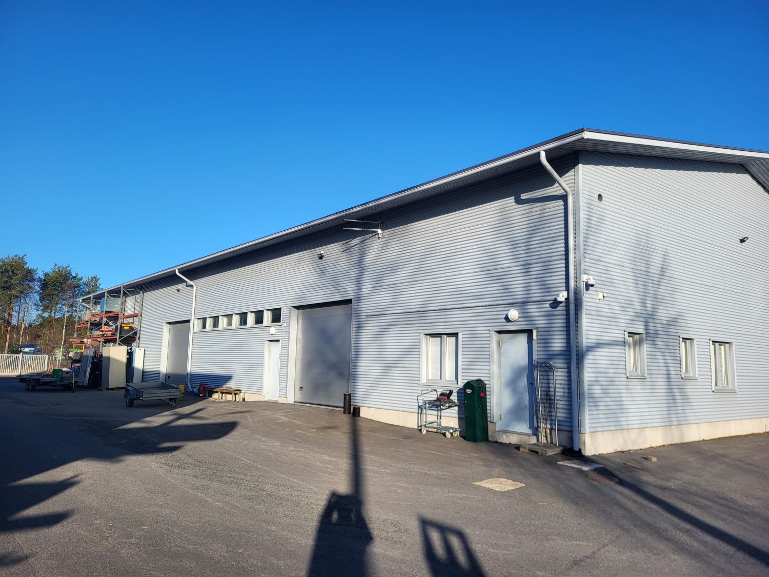 Tontti aidattu jokaiselta sivulta. Sähköportit kahdella sivulla. Takaosan varastorakennuksessa on 3 erillistä yksikköä joista jokaisessa 3 nosto-ovea. Varastorakennuksessa ei ole lämmitystä.
