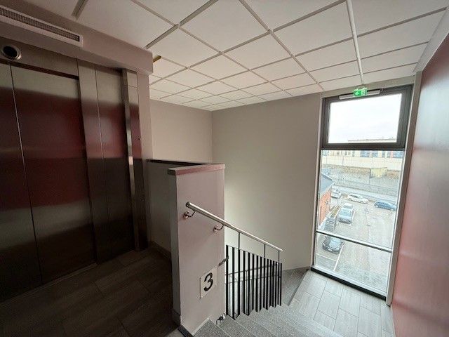 Kulkuyhteys portaita tai hissiä käyttäen. Käytävällä on lisäksi reilun kokoinen tavarahissi, joten toimitilaan saa kuljetukset hyvin onnistumaan.