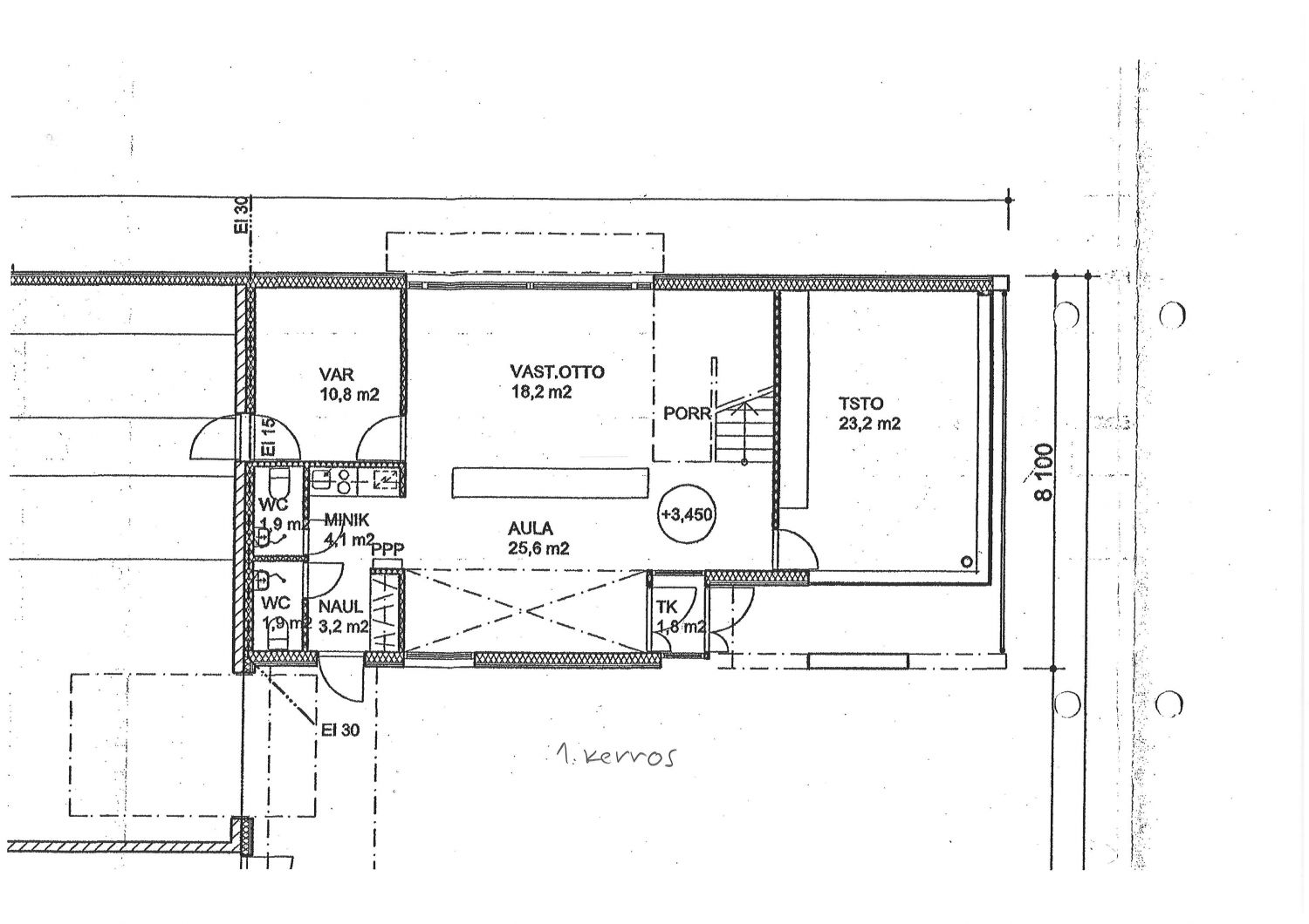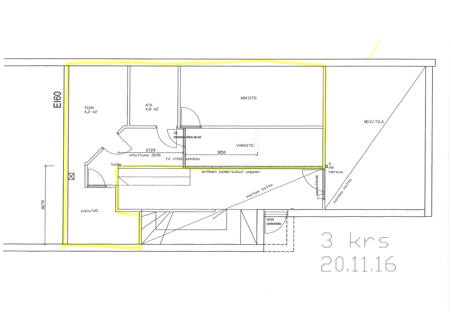 Toimistosiivessa toimistot kahdessa kerroksessa ja varasto kolmannessa keroksessa
