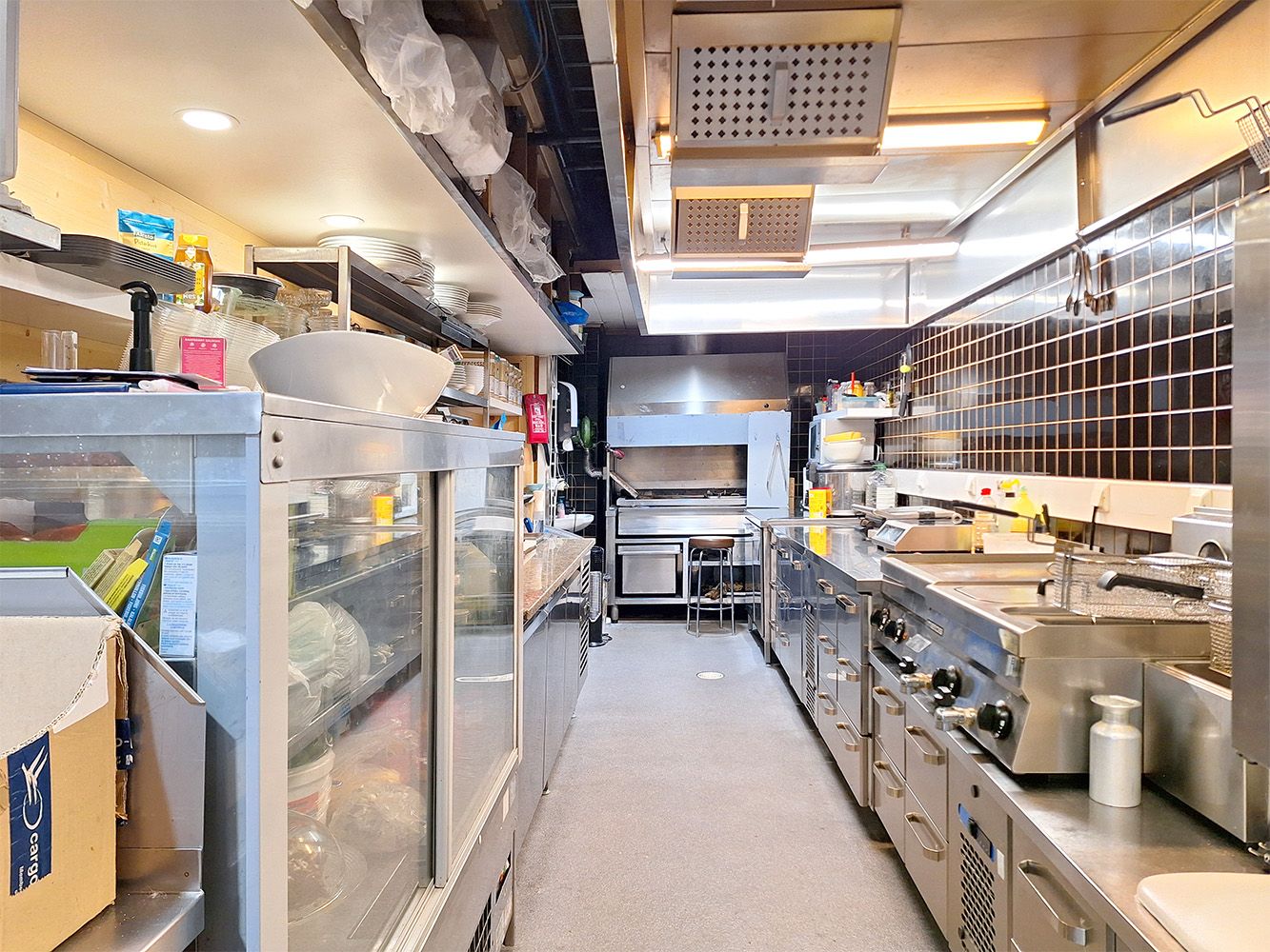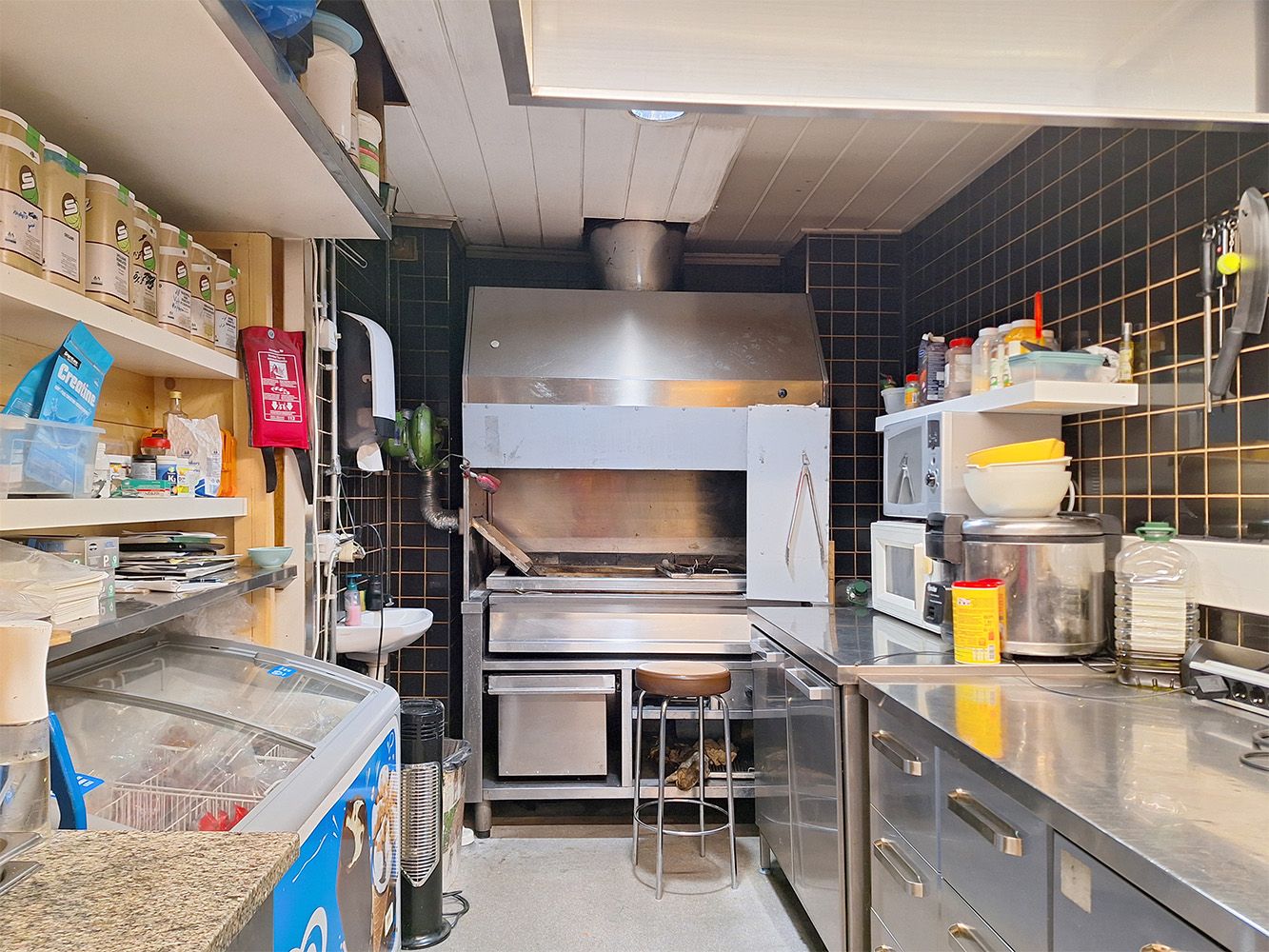 Tilassa toimiva liiketoiminta ei ole myynnissä, ja osa keittiön kalusteista kuuluu nykyiselle vuokralaiselle.