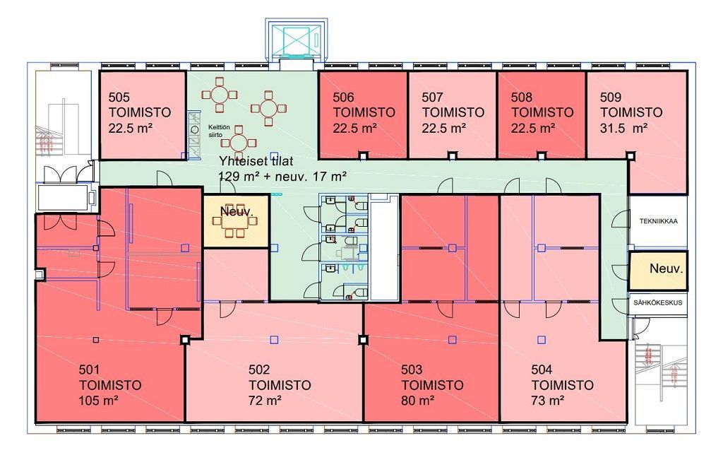 Vuokrataan siisti 5. kerroksen toimistotila Vallilasta. Tilassa on avotoimistoa ja kaksi huonetta. Kerroksen vuokralaisille on siistit ja edustavat yhteiskäyttöiset keittiö ja taukotilat, sekä kaksi neuvottelutilaa ja wc:t. Siivous, sähkö ja kahvit sisältyvät vuokraan.