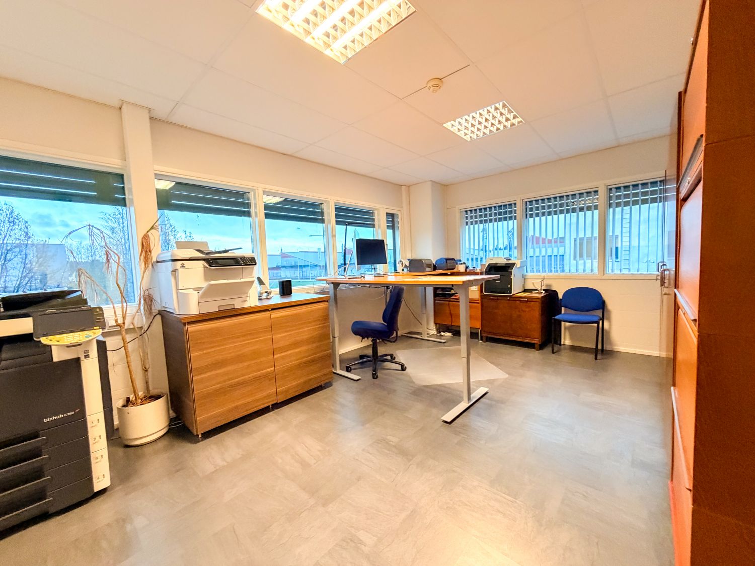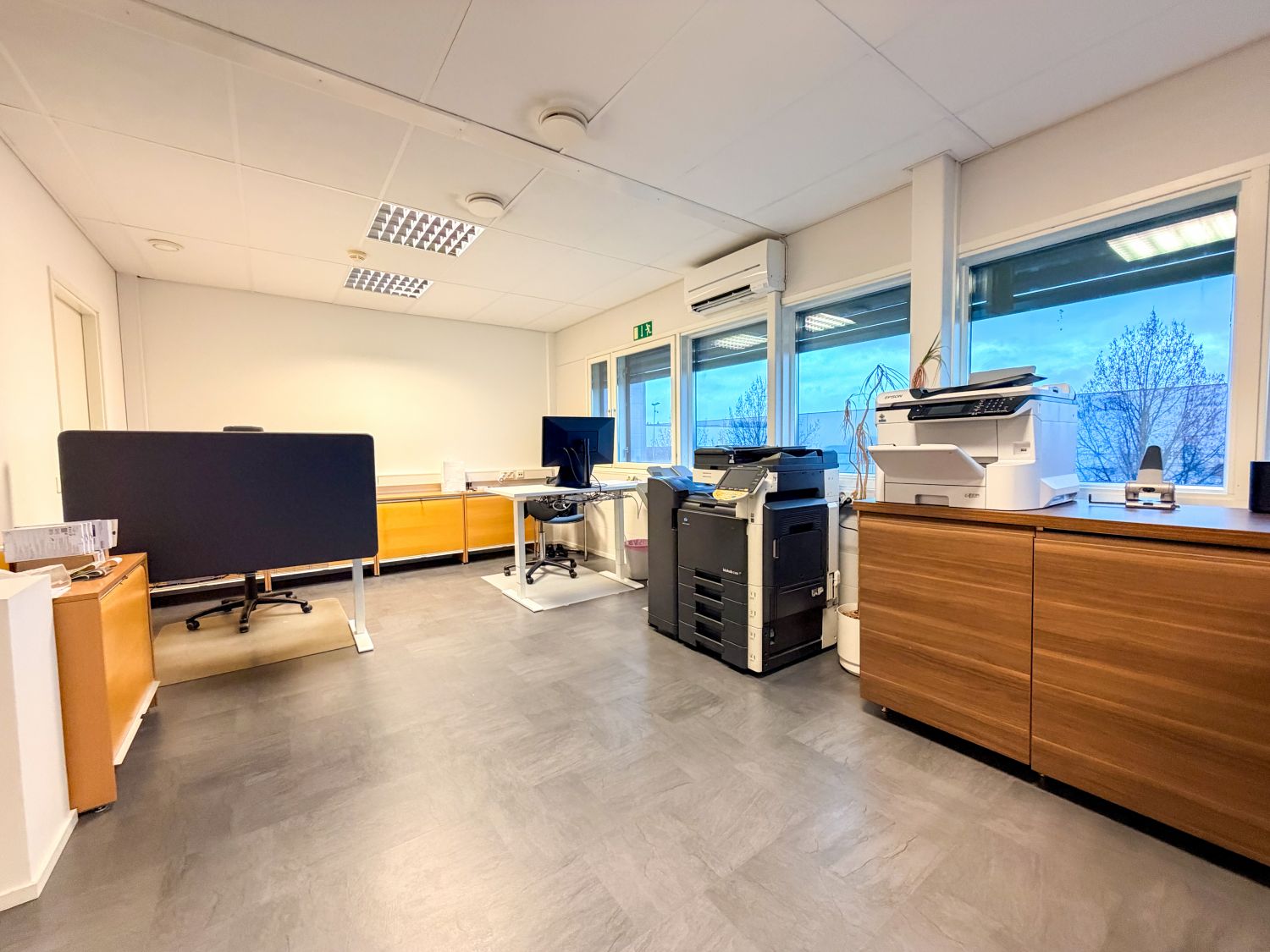 Toimisto on varustettu kahdella ilmalämpöpumpulla, jotka lisäävät käyttömukavuutta ja pienentävät energiakustannuksia. Ilmalämpöpumput takaavat tehokkaan lämmityksen talvella ja miellyttävän viilennyksen kesäkaudella.