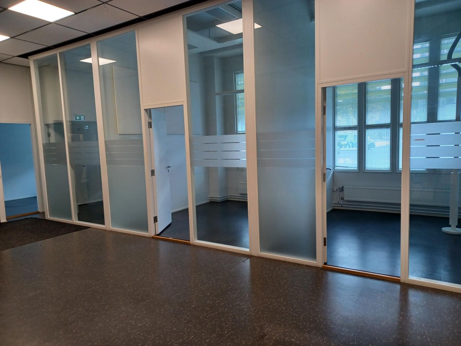 Kokonaisuudessa 8 toimistohuonetta, 2 aulatilaa, pieni avokeittiö ja wc.