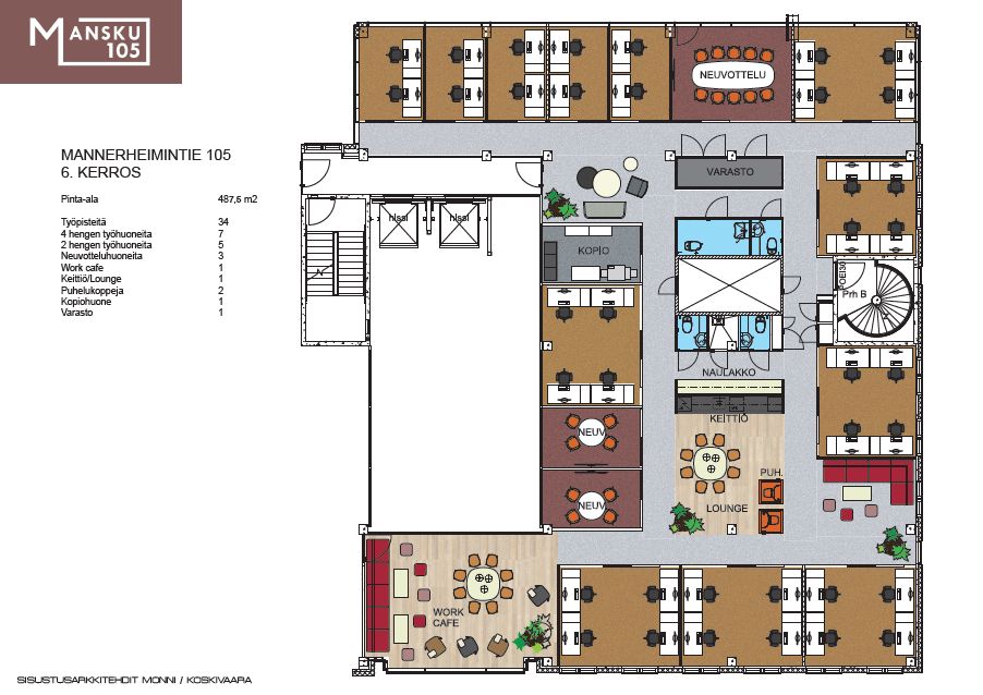 Vapaana kiinteistön 6. kerroksessa 487,5 m² avara ja valoisa toimitila. Tiloista avautuu hieno vehreä näkymä idylliseen Ruskeasuon siirtolapuutarhaan. Kiinteistön aulatila on uudistettu ja remontoitu kesällä 2020. Edustava ja viihtyisä aula toimii yrityksen käyntikorttina asiakkaille sekä henkilöstölle.