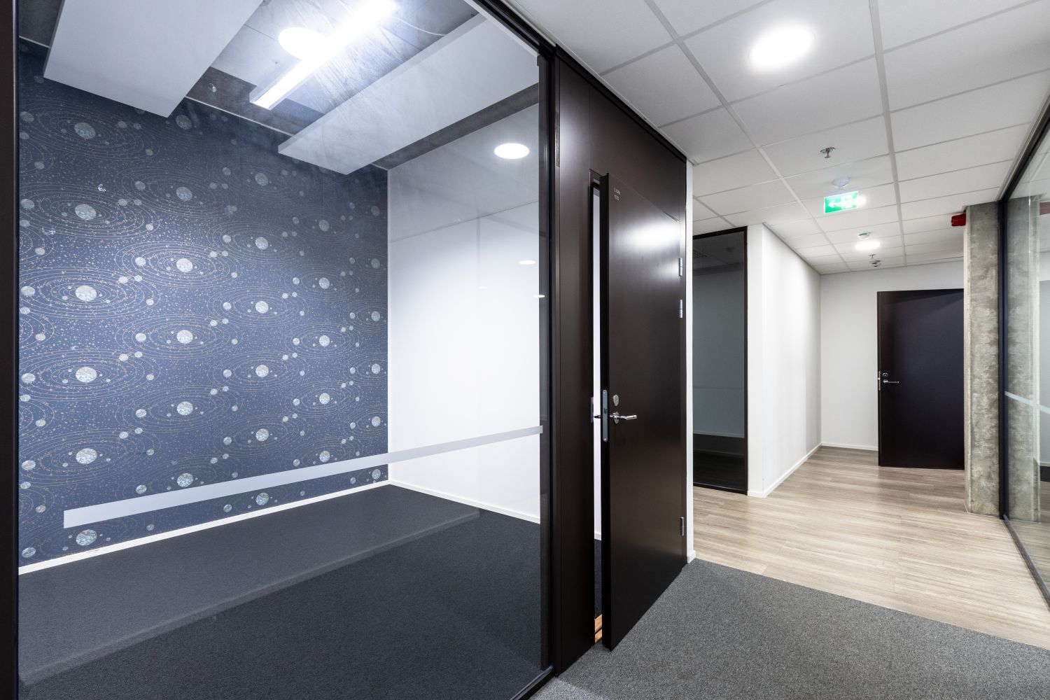 Tämä suuri, valoisa ja moderni viidennen kerroksen toimitila koostuu kahdesta hissiaulan yhdistämästä noin 400 m² osasta. Toimistossa on avotilaa ja muutamia eri kokoisia neuvotteluhuoneita sekä keittiö- ja wc-tilat. Ikkunoista on näkymät Aleksis Kiven kadun ja sisäpihalle Konepajan suuntaan.
