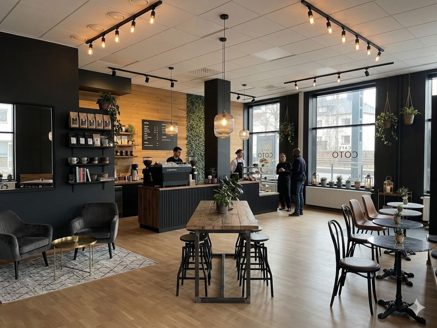 Tyylikäs kahvila: Luo alueen asukkaille uusi olohuone trendikkääseen ympäristöön.