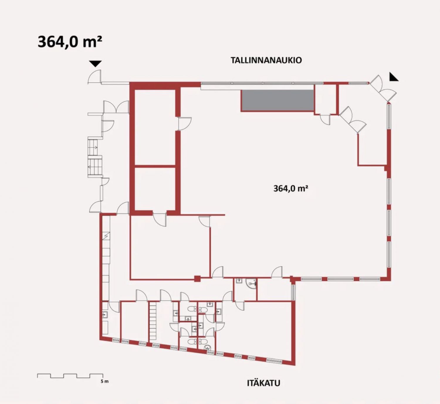 Vuokrattavissa katutason 364 m2:n liike-/toimistotila. Tila ei sovellu ravintolakäyttöön.
