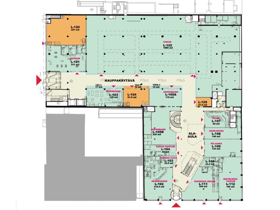 Vuokrataan siisti liiketila hyvältä paikalta Kauppakeskus Lundin katutasosta (pohjakuvan tila L-120). Tilaan on oma sisäänkäynti tila ei sovellu kahvila- ja ravintolakäyttöön.