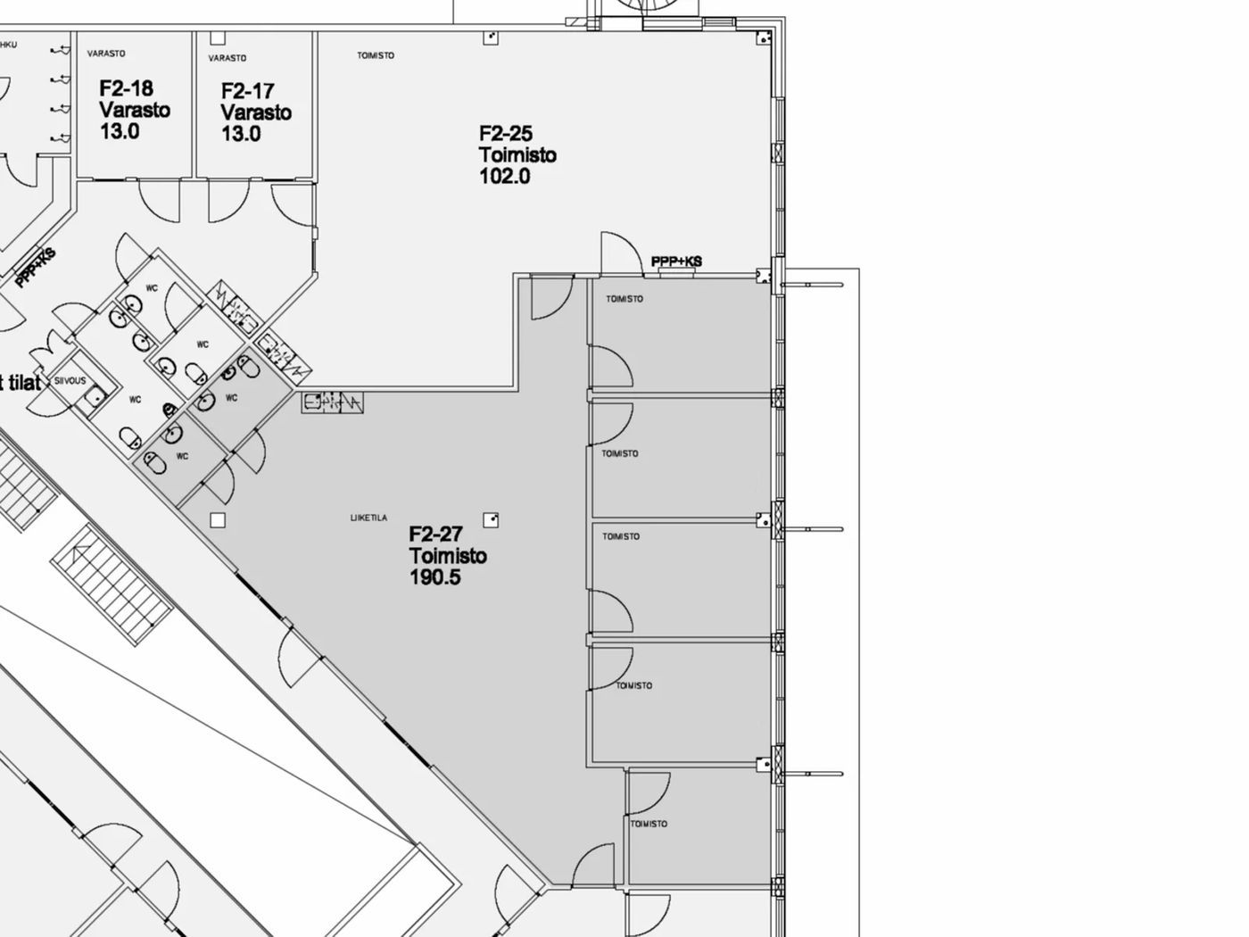 Vuokrattavana katutason toimitila 190,5 m2. Tila on mahdollista laajentaa lisäämällä viereinen toimitila 102 m2 jolloin kokonaisuus yhteensä 292.5 m2.