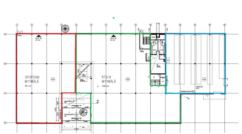 • 1 528 m² avointa liike-/ myymälätilaa katutasossa