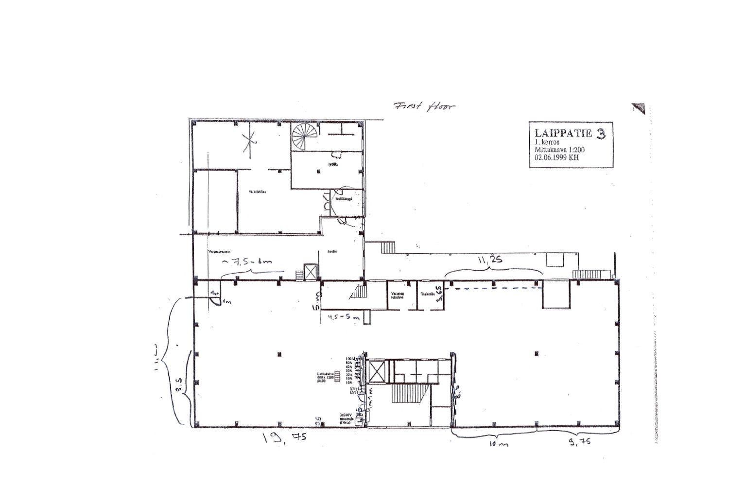 Kunto, varusteet ja palvelut: Tiloissa toimistoja sosiaalitiloineen, hallitiloja lattiakaivoineen ja vesipisteineen. Löytyy myös voimavirtaa.