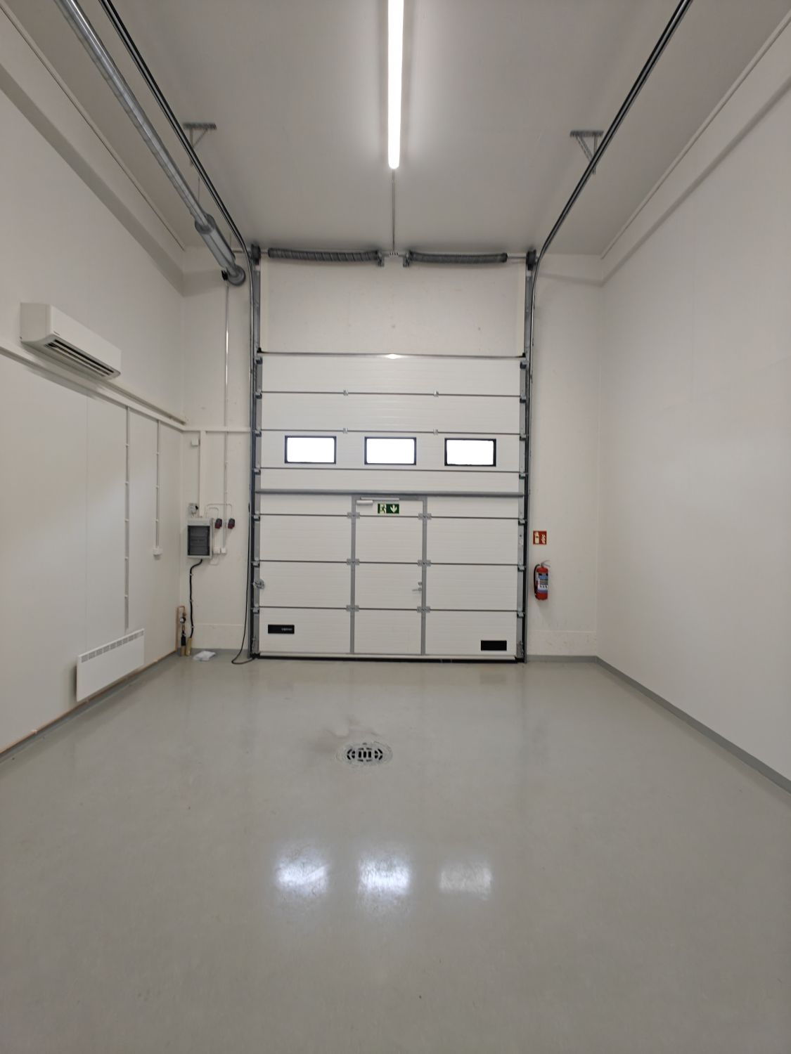 Sähkölämmitys (ilmalämpöpumppu), hiekan- ja öljynerotuskaivo, vesipiste, WC. Nosto-oven korkeus on 4 m ja tilan korkeus 5,4 m, joka mahdollistaa esim. erilaiset hylly- tai parviratkaisut, varaus parvelle