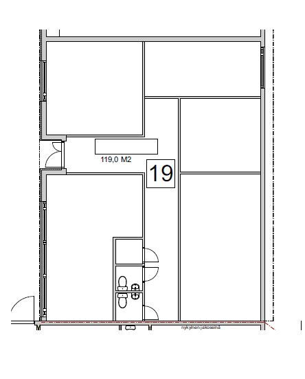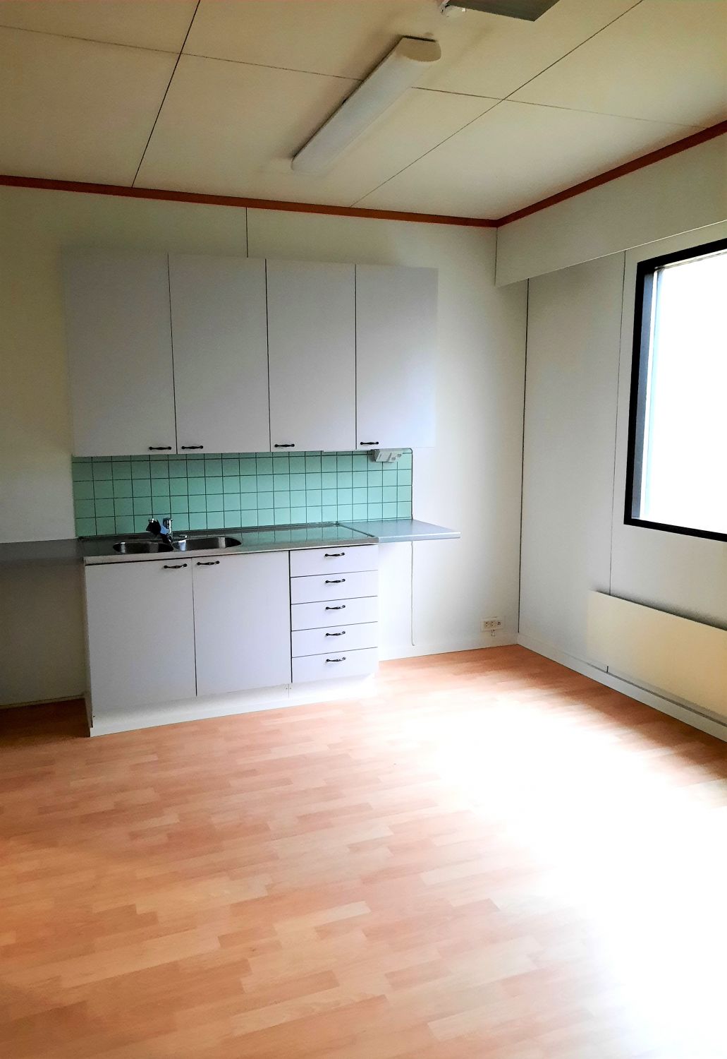 Tässä toimistotilassa on tilaa useammalle työpisteelle. Tilassa on keittiökaapistoa ja kaksi erillistä wc:tä.