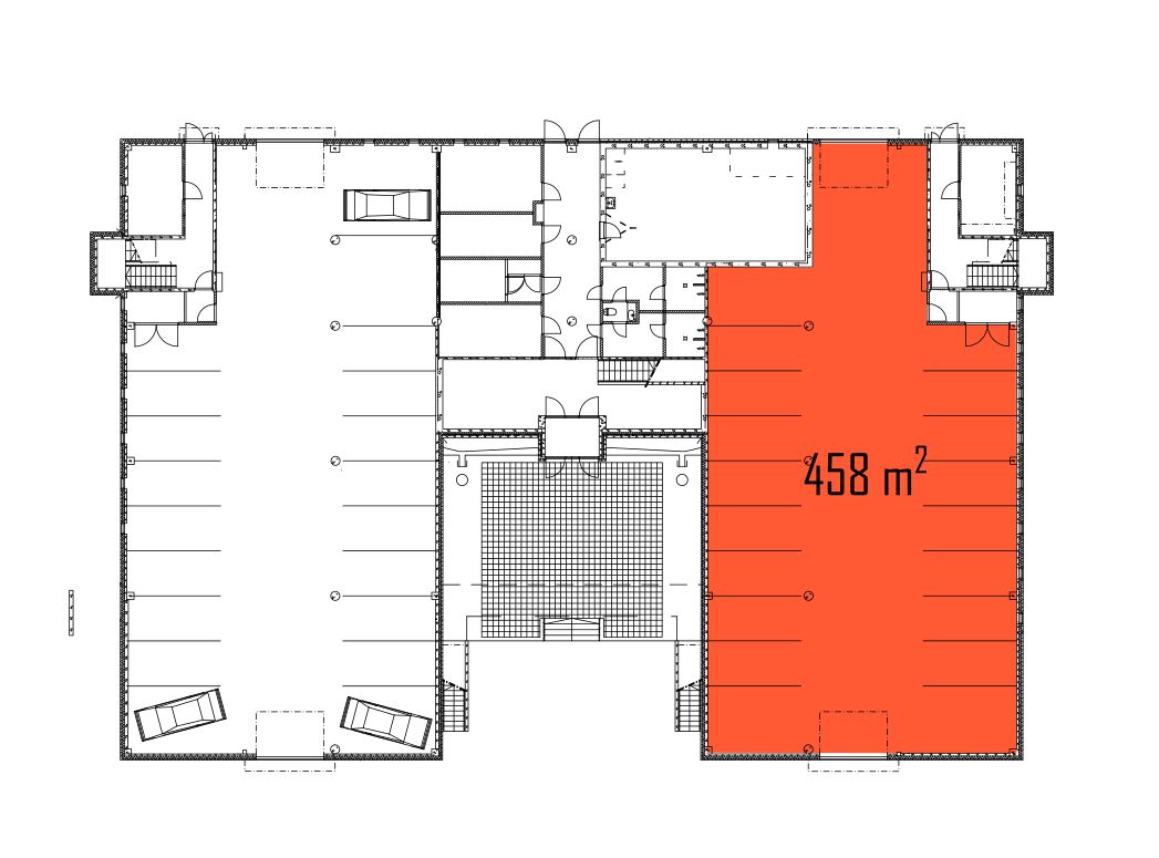 Vuokrattavana on noin 458 m2 suuruinen läpiajettava varastotila, jonka molemmissa päädyissä on nosto-ovet (leveys noin 360 cm, korkeus noin 240 cm). Tila ei sovellu autopesulaksi, sillä siinä ei ole lattiakaivoa.