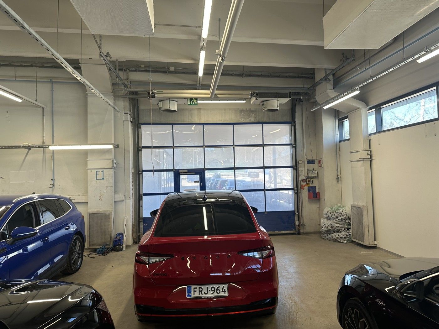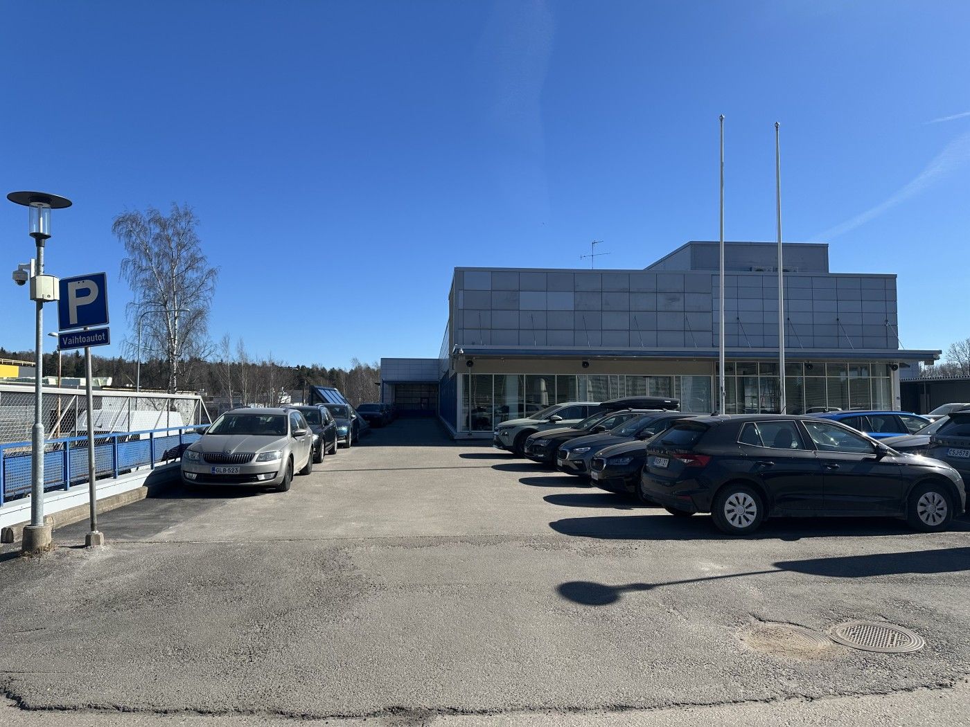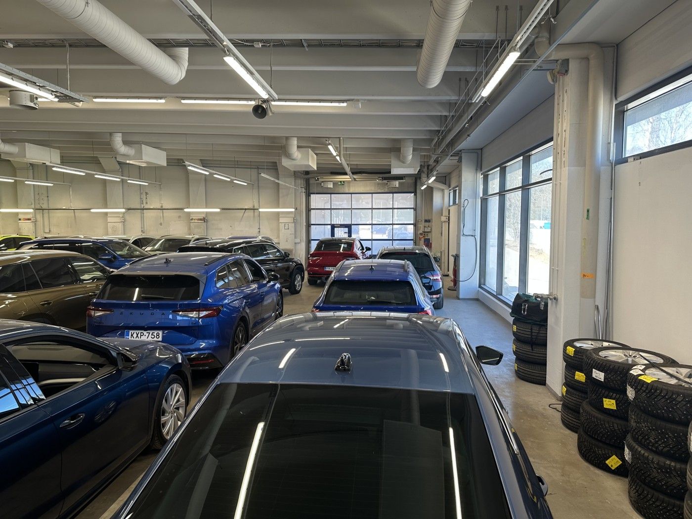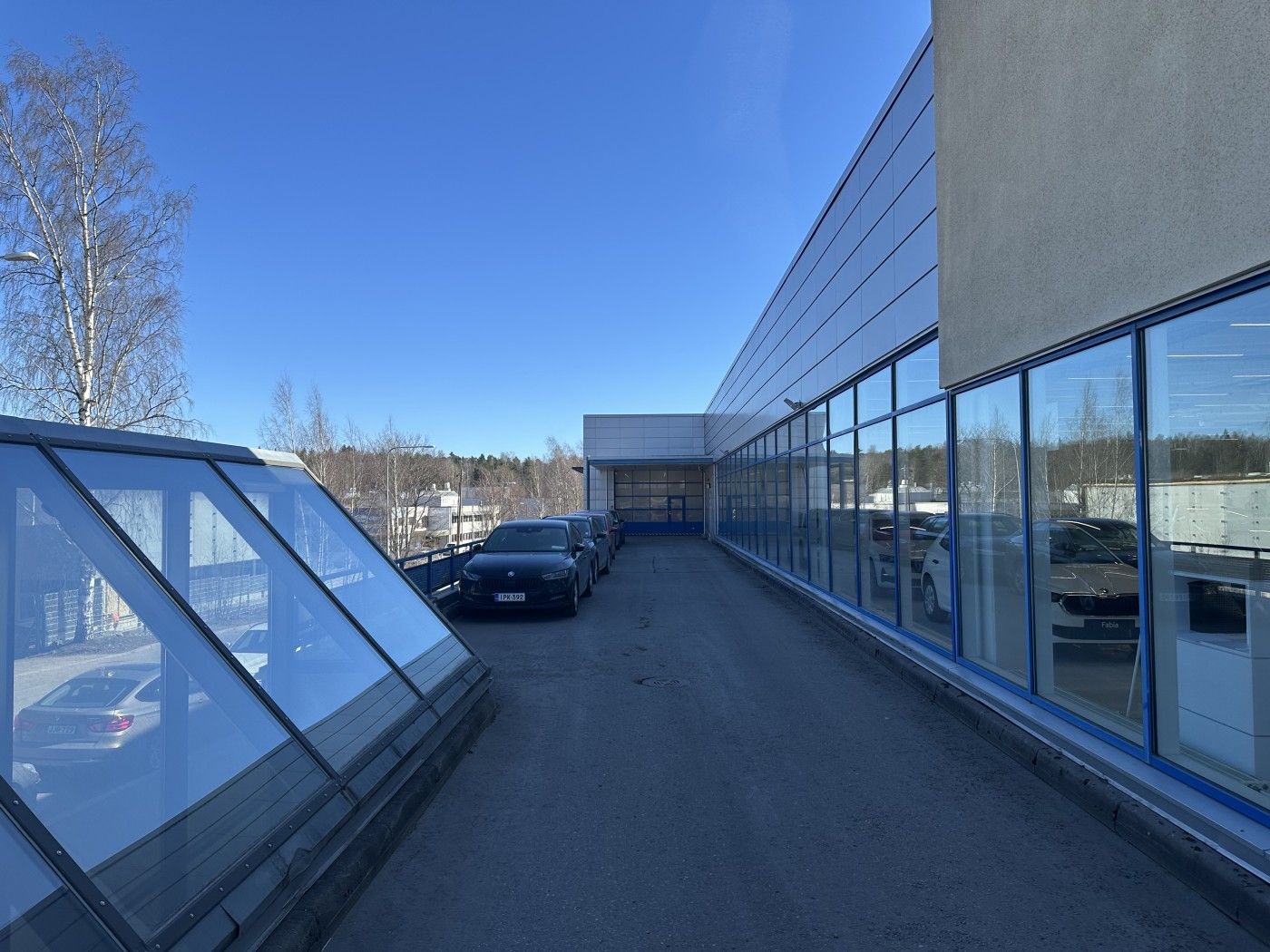Halliin on käynti yhden suuren nosto-oven kautta ja kiinteistön pihalta on mahdollista järjestää noin 20 autopaikkaa sekä nosto-oven edustalta että erilliseltä pysäköintialueelta.