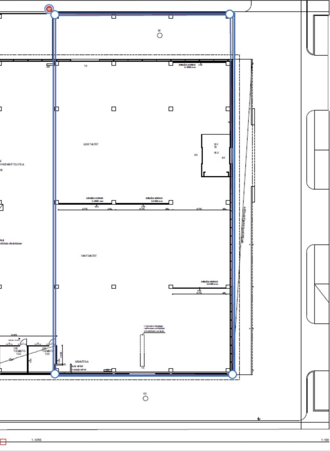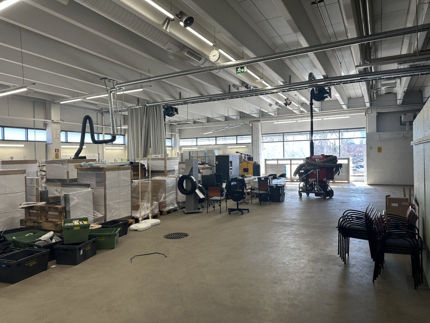 Tilojen vapaa korkeus on noin 4 metriä, mikä mahdollistaa monipuolisen käytön erityisesti logistiikan ja kevyen kaluston käsittelyn tarpeisiin.
