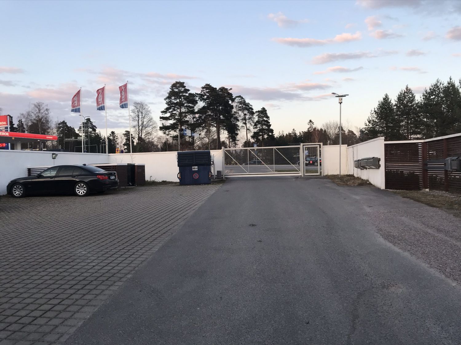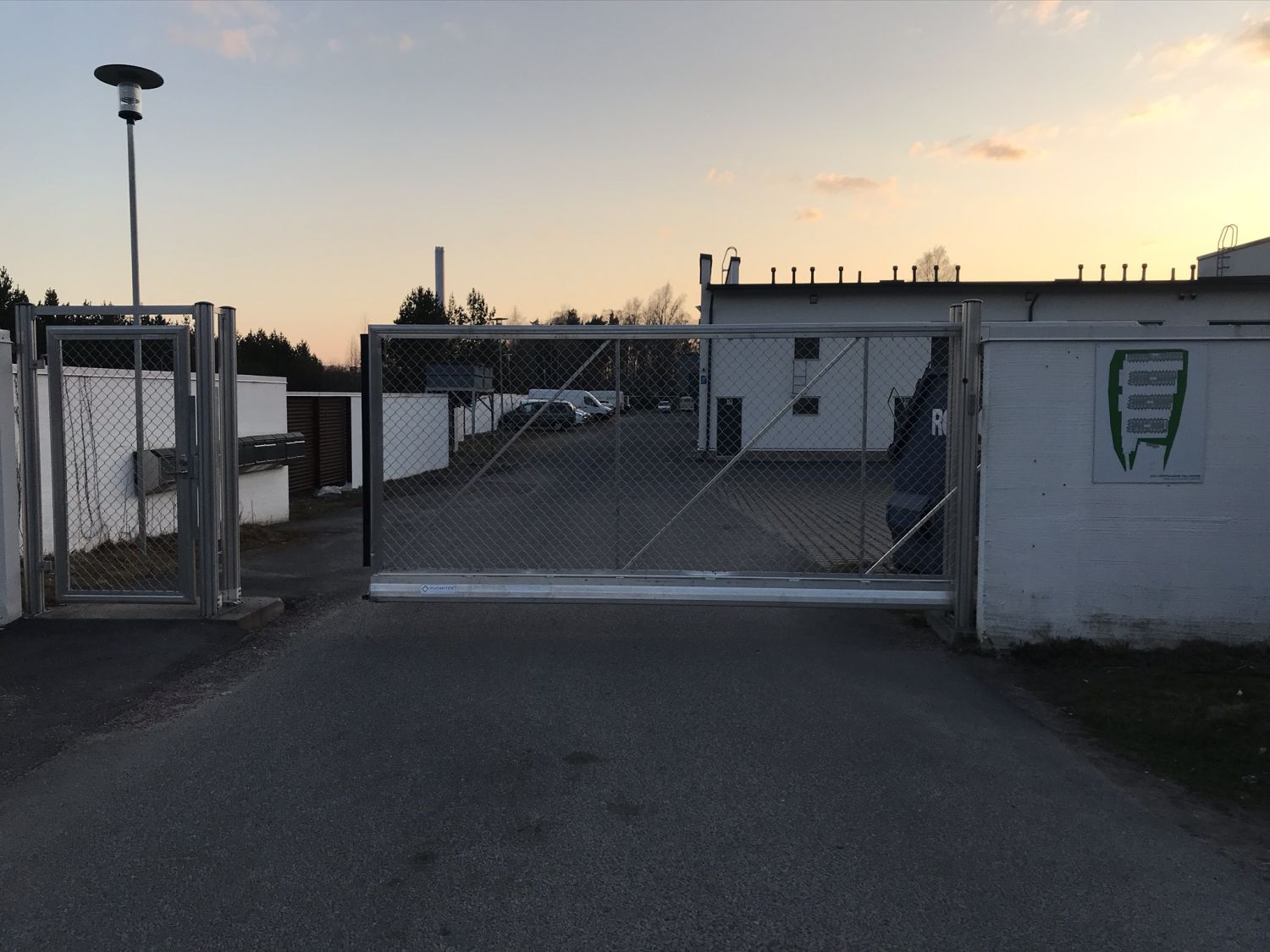 Aidatulla alueella, jossa kameravalvonta ja käynti numerokoodilla tai mobiiliapplikaatiolla portista.